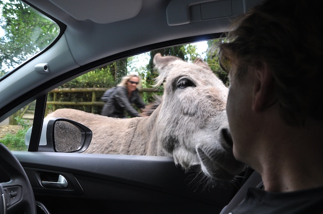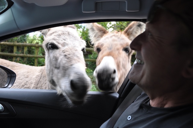 The donkeys are also enchanting, and extremely cheeky. We stopped the car to take a photo, and a couple of them came right up to us, sticking their heads in and hoping for treats. I’d like to say that I was virtuously obeying the strictures not to feed the animals, but I simply forgot to arm myself with appropriate fodder before leaving home. Next time I’ll remember the carrots.