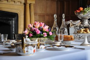 Of course, I’m always most interested in the dining room, where the table was beautifully laid. The porcelain looks like Crown Derby, but I thought would be a bit cheeky to check!