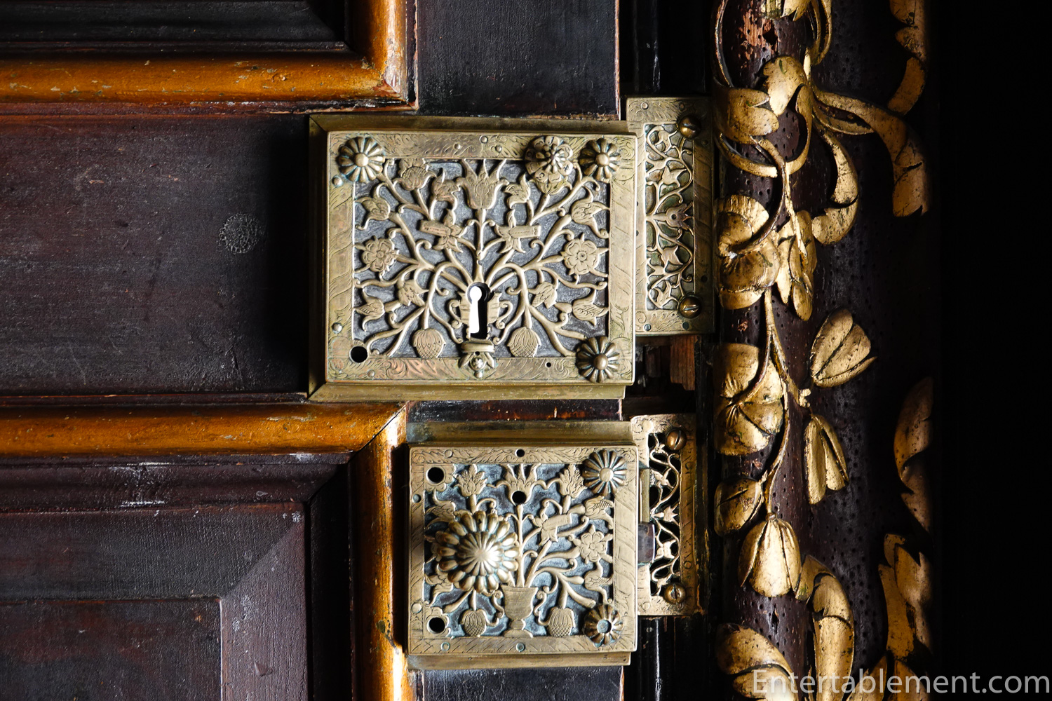 The doors at the house are intriguing. Not only are they gorgeously gilded, the locks are intricately designed and can be set to different combinations. Ingenious, especially for the time!
