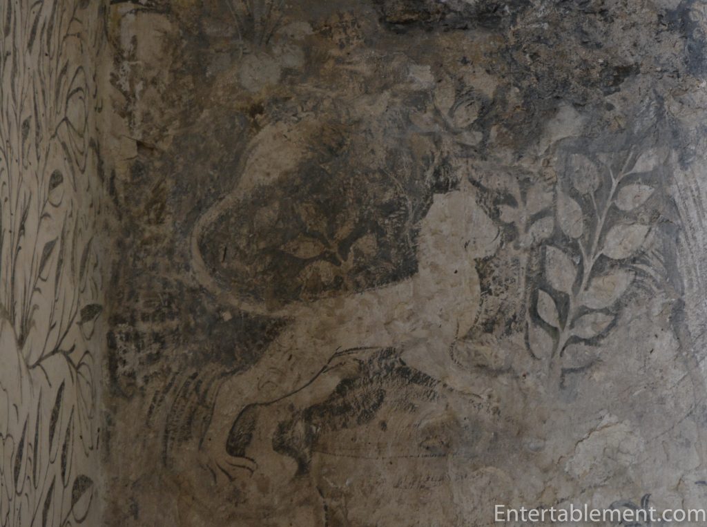 The chapel has 15th-century wall paintings, and an early 15th-century Nottingham alabaster reredos (the screen behind the altar). The paintings are beautifully detailed, especially the flora and fauna.