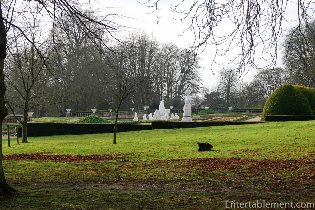 The statuary has been smothered in protective clothing for the winter. Don’t they look like Halloween figures?