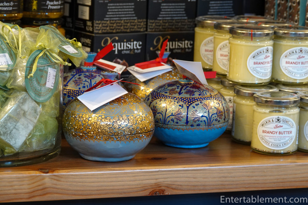Tasty comestibles in beautiful wrappings, including these gorgeous gilded tins.
