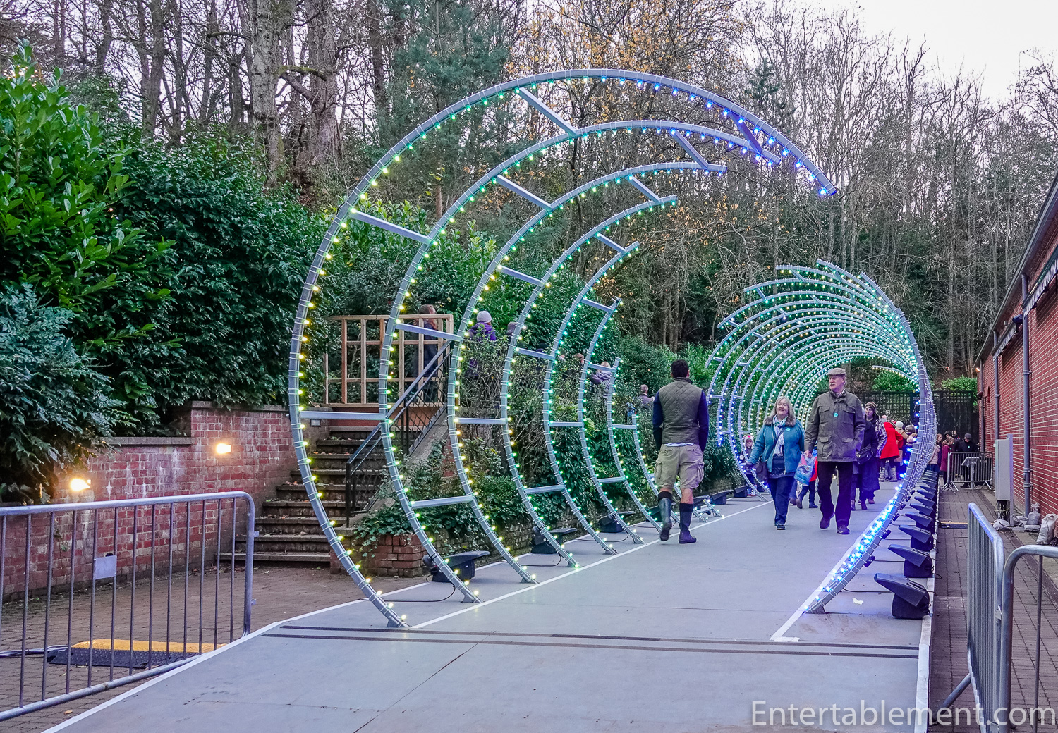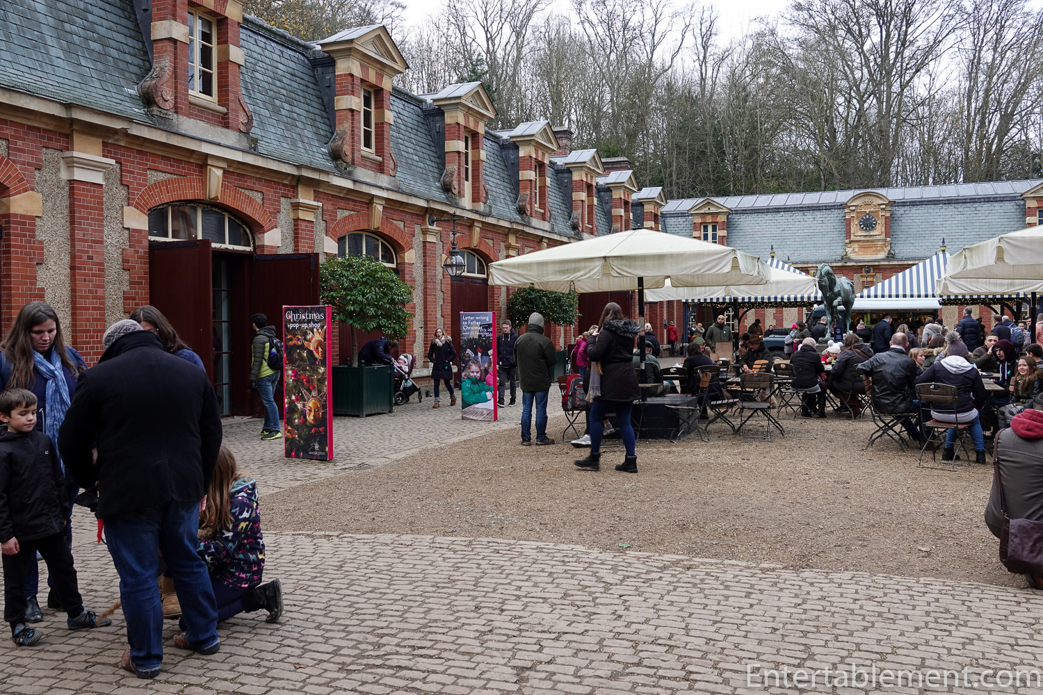 This is the original stable block, down the hill from the house. It now serves as a gift shop and a secondary restaurant. For the season, they were offering Christmas bauble painting and letter-writing to Father Christmas for the kids, as well as a light tunnel and large playground.