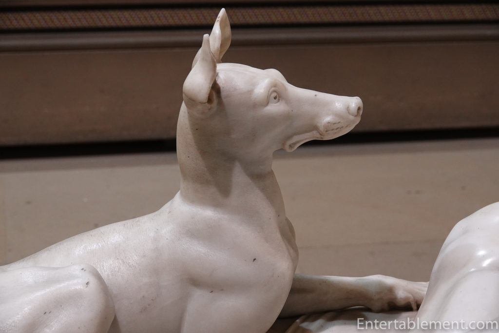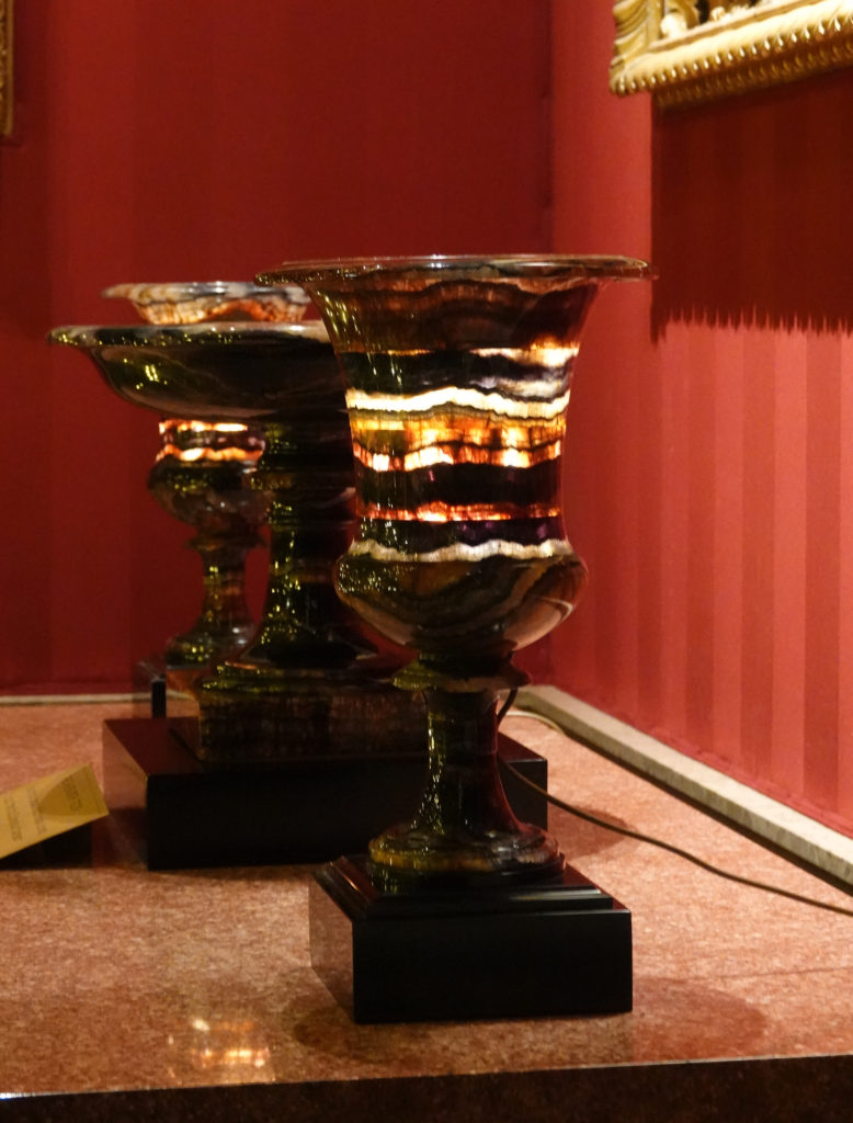Just before we moved through to the sculpture gallery and out into the Orangery Shop, we noticed a display of beautiful Blue John urns. The stone is mined in the area, and it’s commonly thought that the name Blue John is a corruption of the French Bleu Jaune or Blue Yellow. The blue is more purple, I think. Lovely!