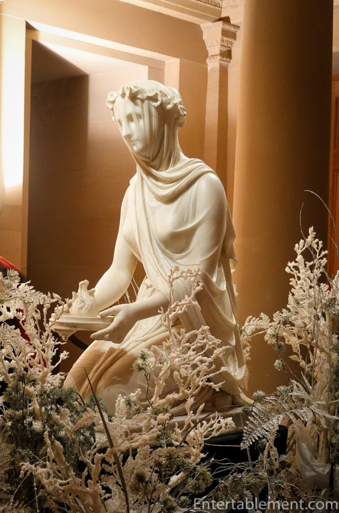 The famous statue of the Veiled Vestal Virgin sat among a display of winter foliage in the Grotto area.