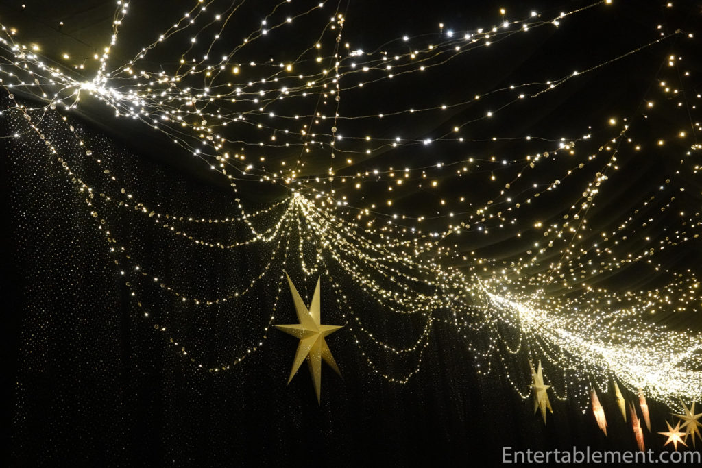 Around the final turn of the courtyard, we went down another corridor hung with black gauzy material and sparkling with lights and stars.