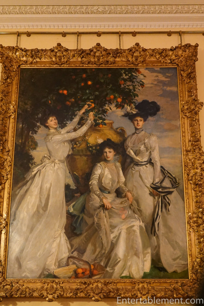 Looking around for clues, I spied this painting. Ah! Got it. Oranges. Not quite sure who the ladies are in the paintings, but likely one of the Duchesses and her two daughters. The house has a large Orangery, which they now use as a gift shop and cafe.