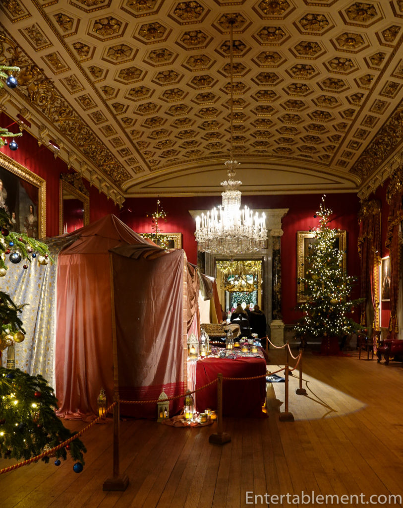We had visited only a fraction of the rooms Chatsworth usually has open to the public, but like Waddesdon, the Christmas tours are confined to a smaller number of rooms, all beautifully presented for Christmas. If you’re interested in seeing more of the house, I’ve done an earlier blog here, and two on previous special displays in the house, Dining Room Fashions and Insect Brooches.
