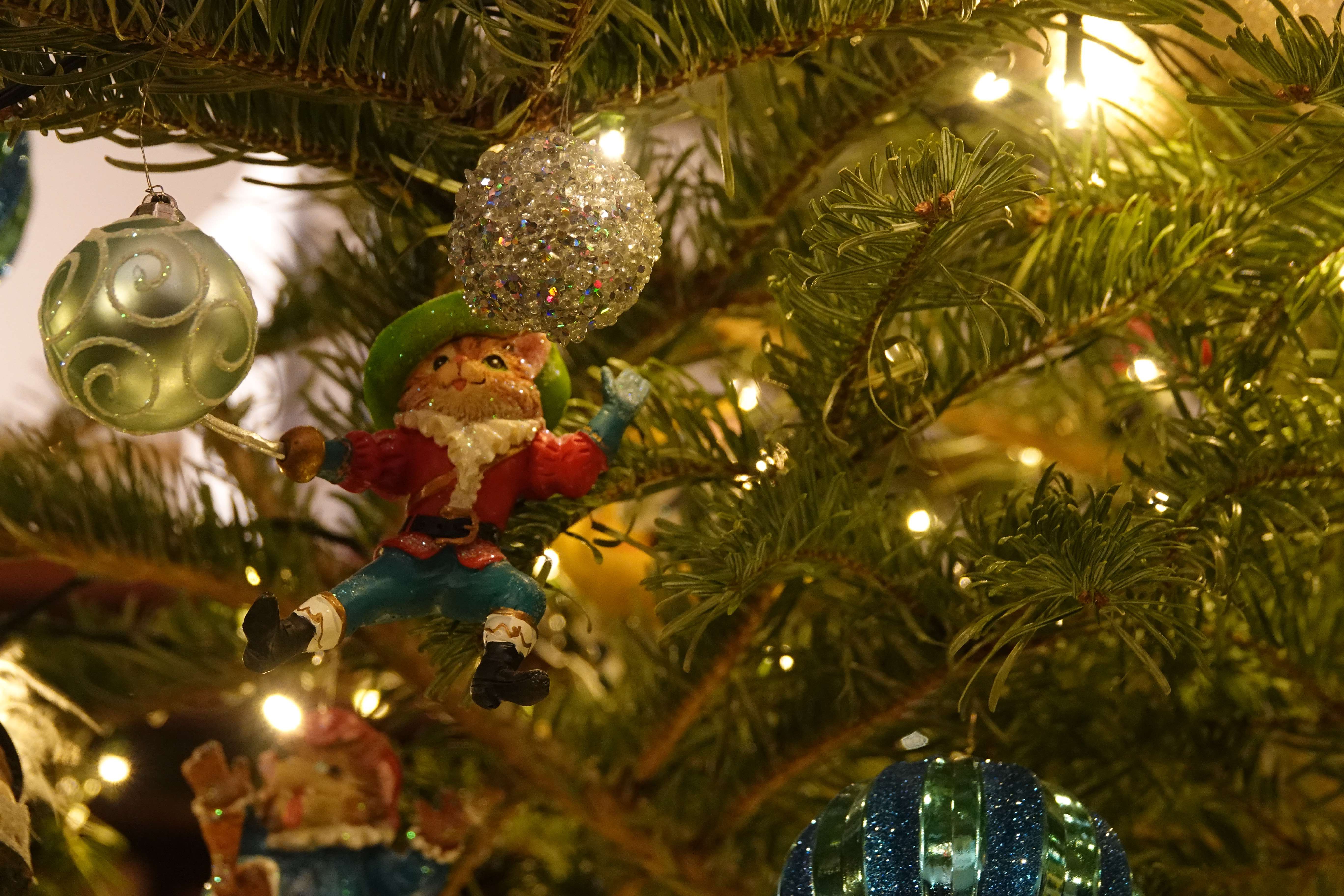 The tall fir tree sported green and red baubles along with more dragons, these ones green.