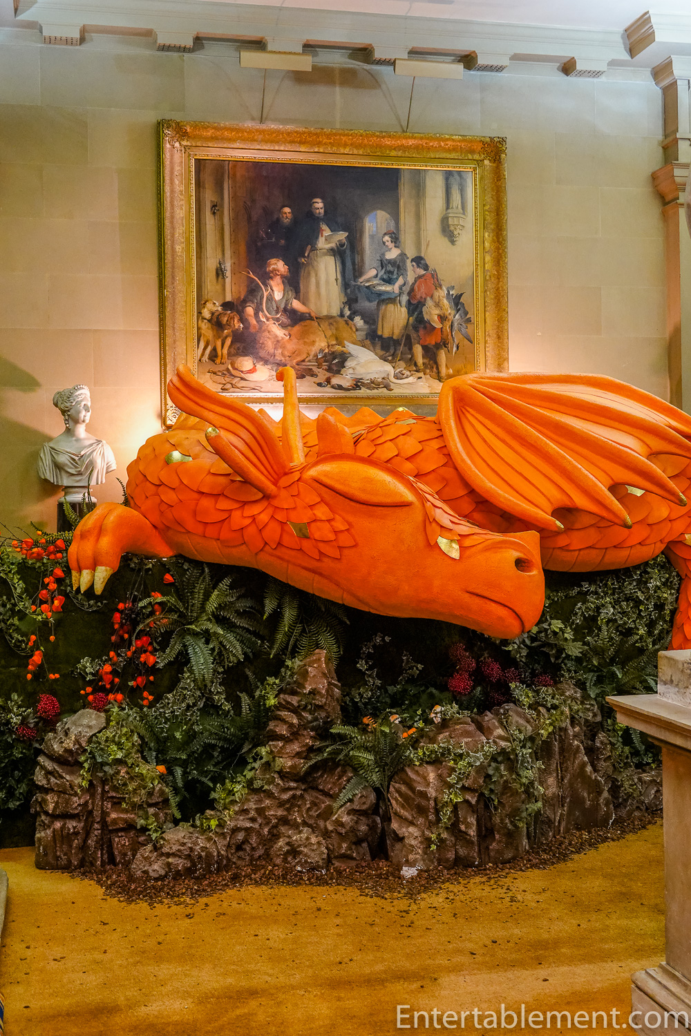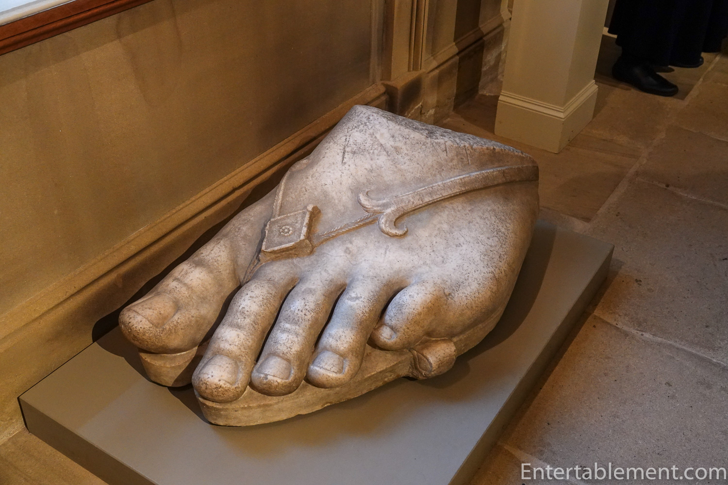 No doubt the massive foot statue in the corridor provided the inspiration for the Shoemaker theme. This area is usually occupied with the family’s collection of ancient statues.