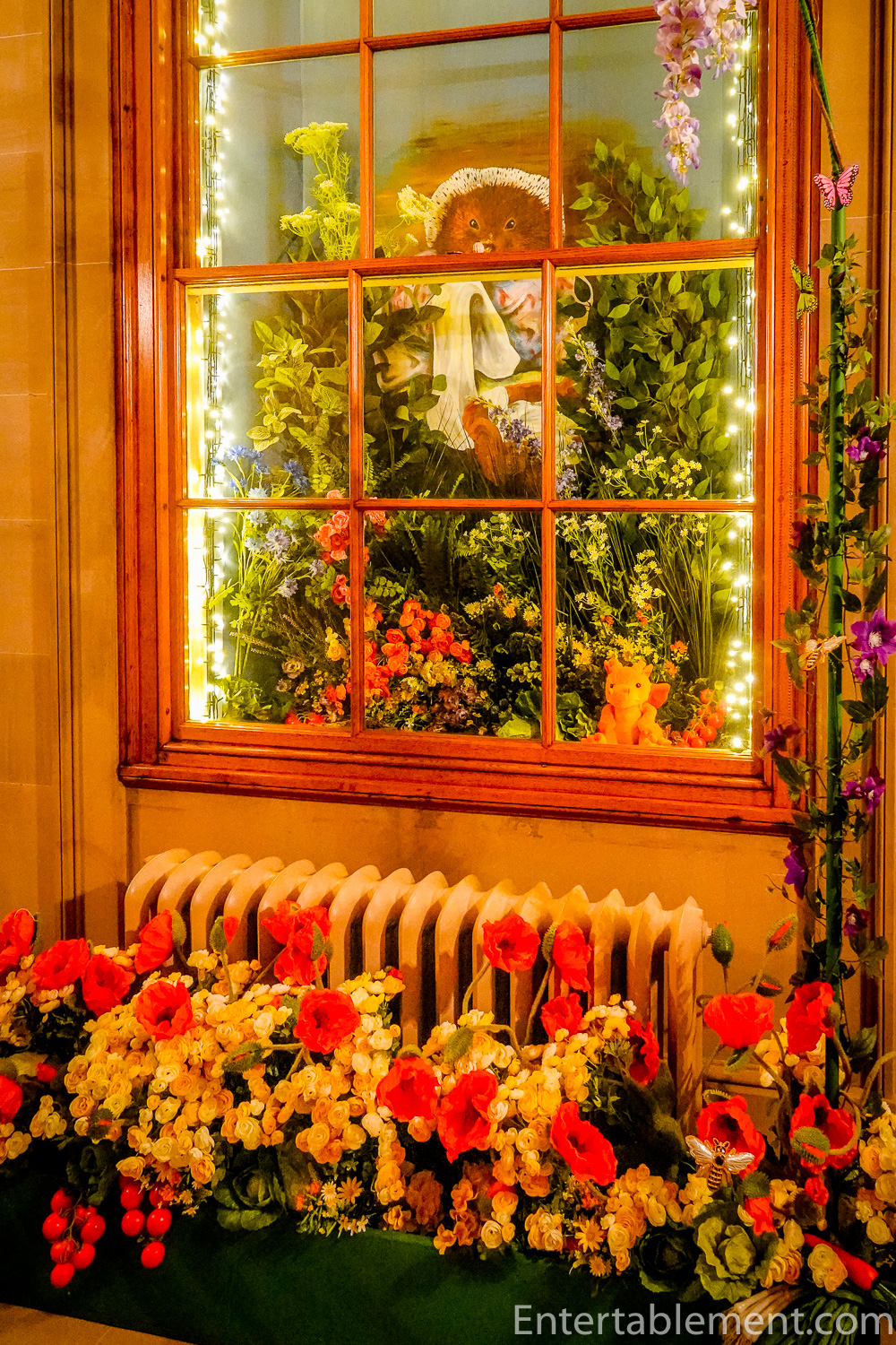 Window frames enclosed vignettes with woodland creatures, including Mrs Tiggywinkle. Oh – and look who’s in the bottom of the frame.