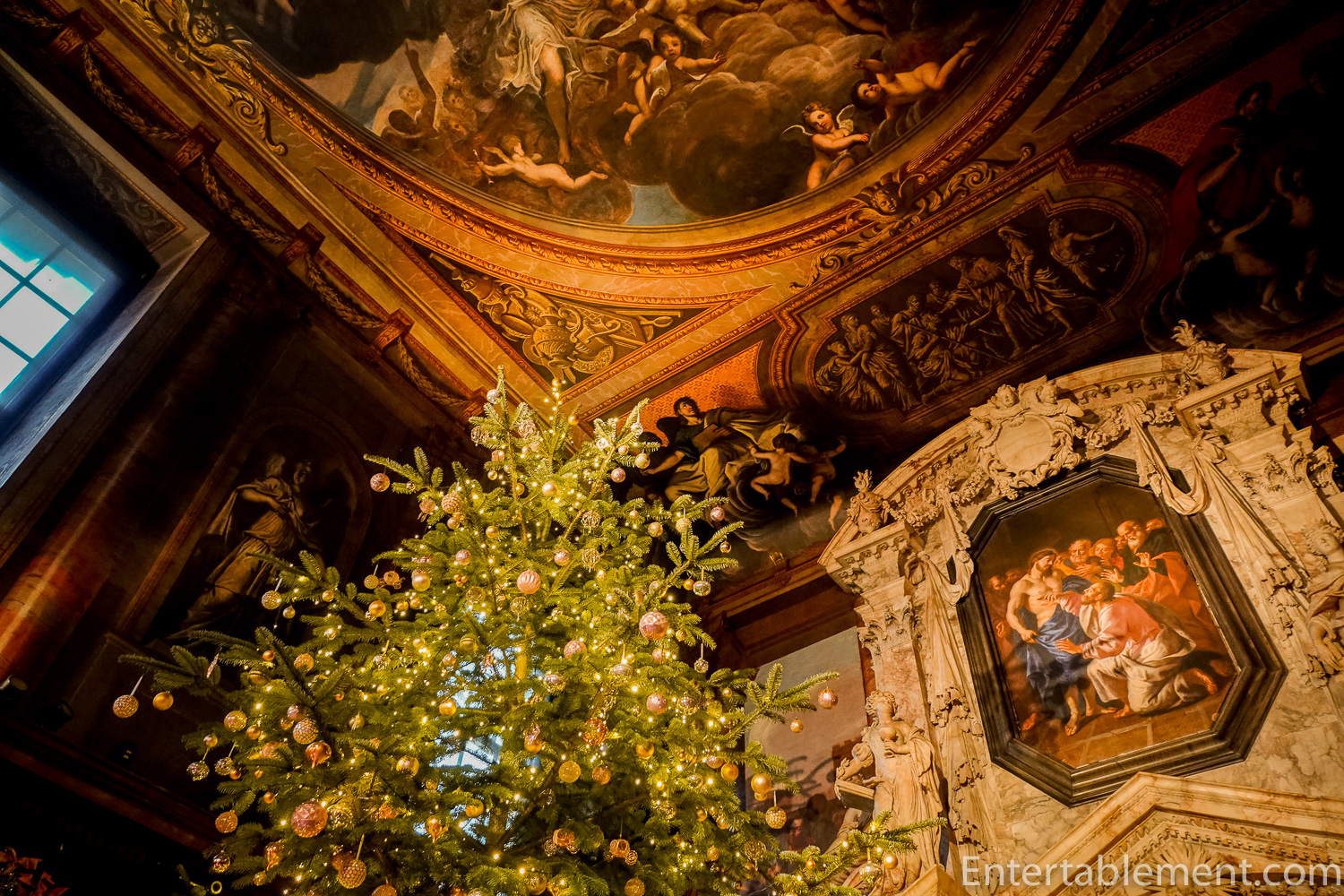 The tree shone against the dark panelling. This room is always difficult to photograph, and the dimmed lights made it even more challenging than usual.