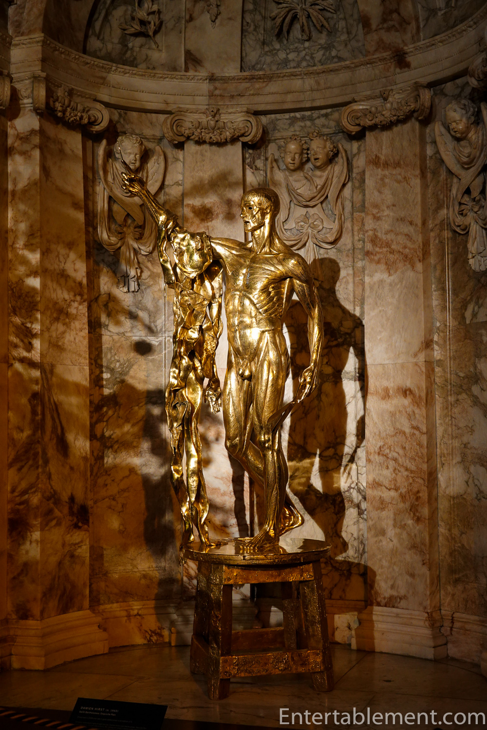 A distinctive gold statue of Saint Bartholemew occupied a niche, reminding one that this room is usually used as a Chapel.