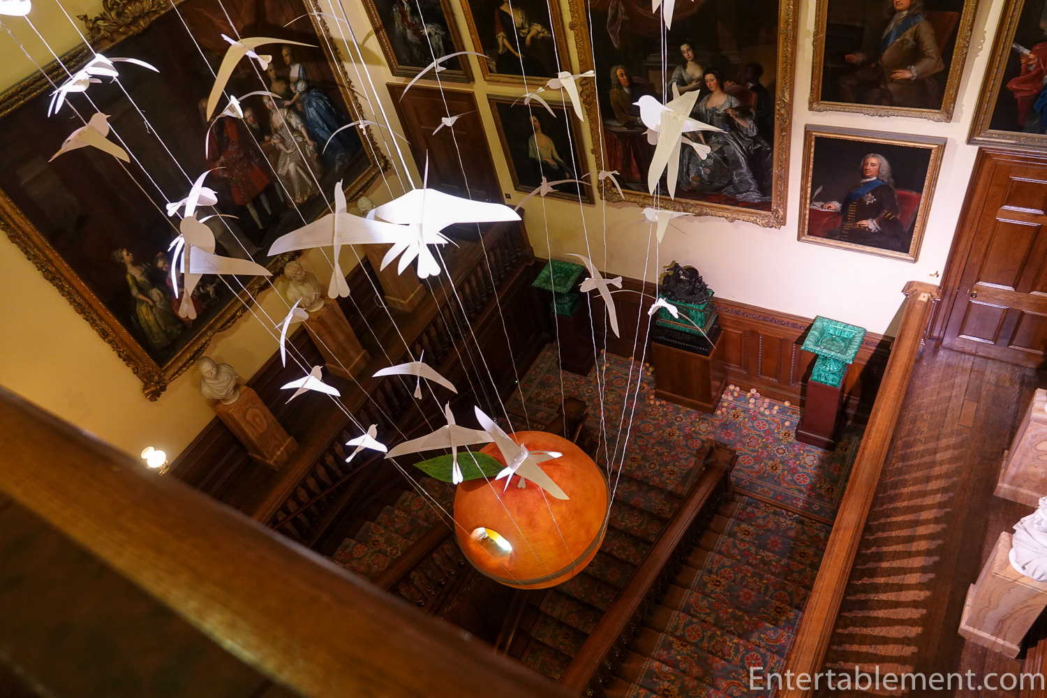Back out into the hall, we looked down on an intriguing flock of birds. Now what’s that all about?