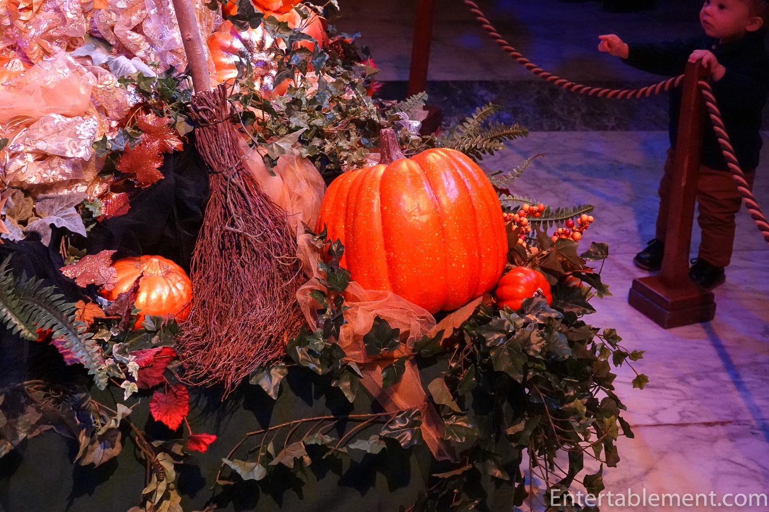 More greenery and autumn-coloured foliage cascaded down from the top of the panelling.
