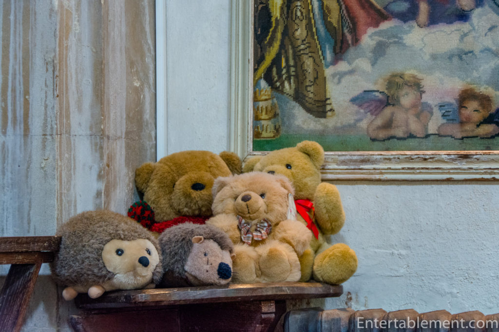 Or perhaps I was influenced by these, which greeted us just inside the church. I particularly loved the hedgehogs. They reminded me of “Medium Norman”, one of our dogs’ stuffed toys, so named because he comes in several sizes, not due to an extrasensory occupation.