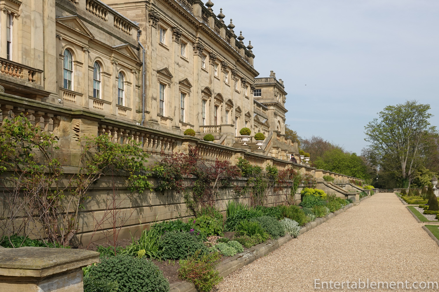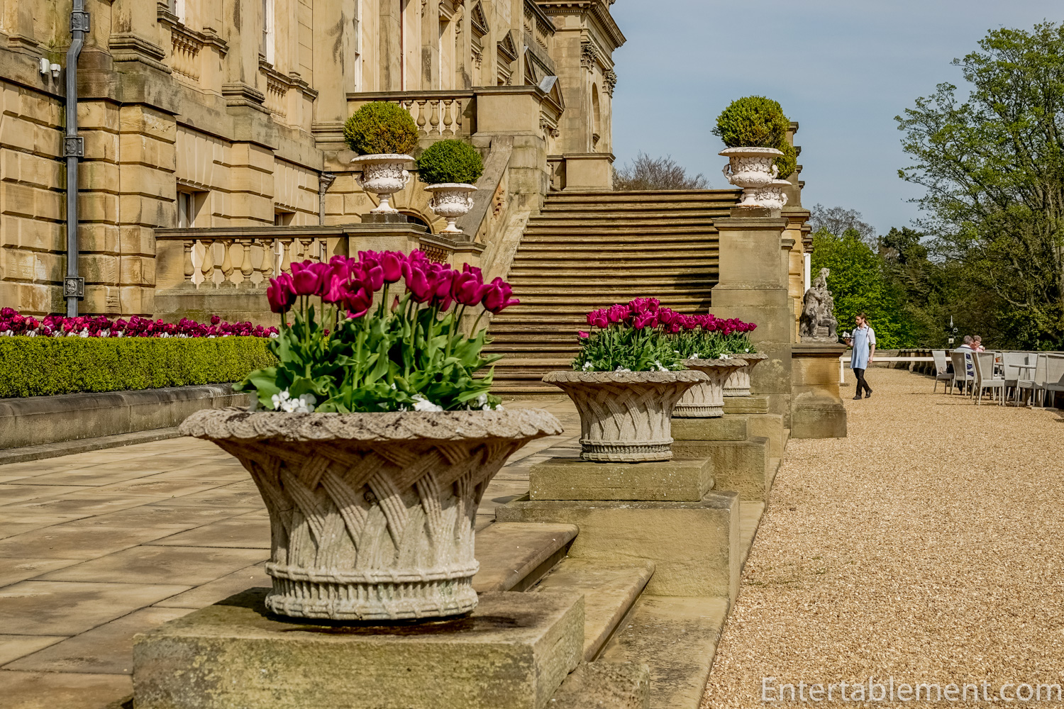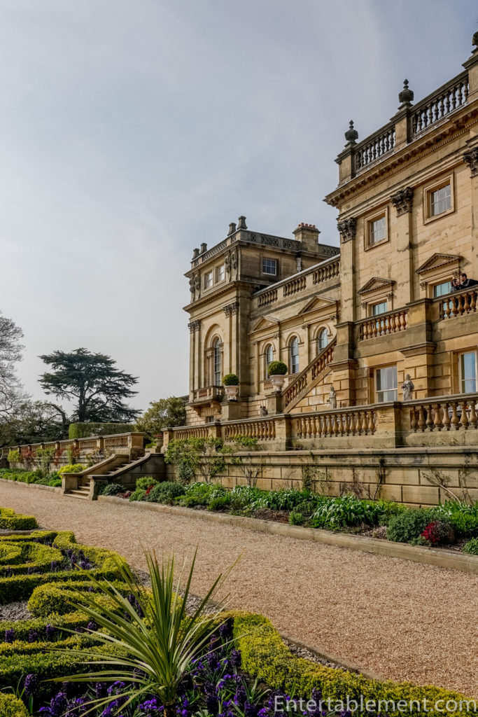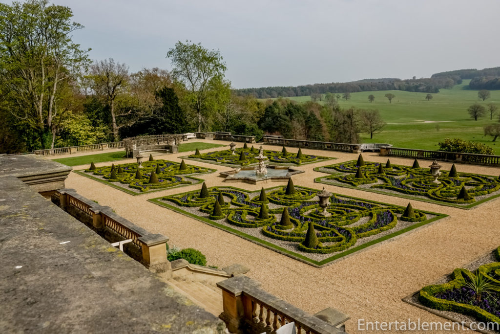 I was itching to get photos, so I left Glenn to enjoy his second cup of tea and made my way down the wide gravelled path to the edge of the parterre, just before the land drops away to the fields below. The terrace was designed by Charles Barry, the same architect who did the renovation in the 1840s for the 3rd Earl.