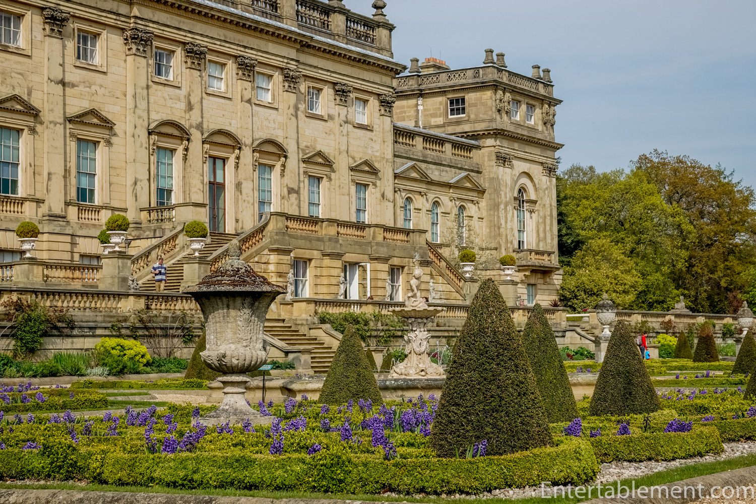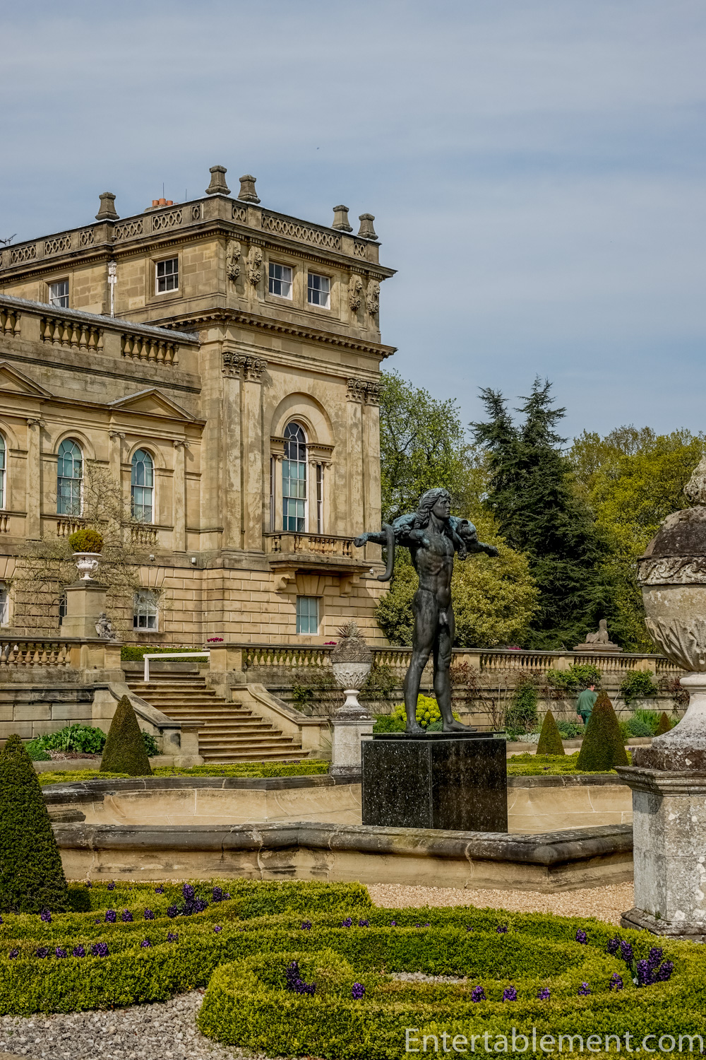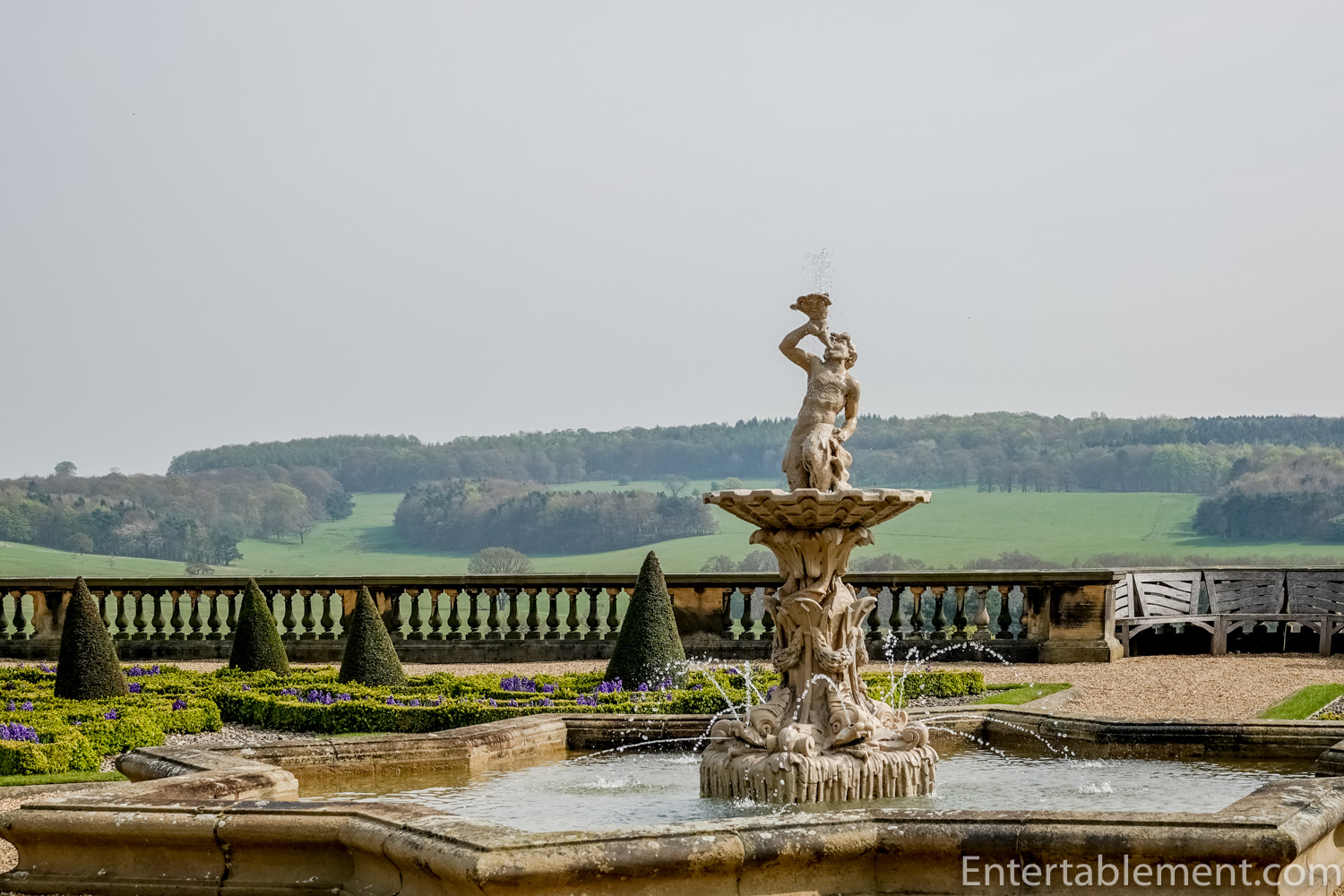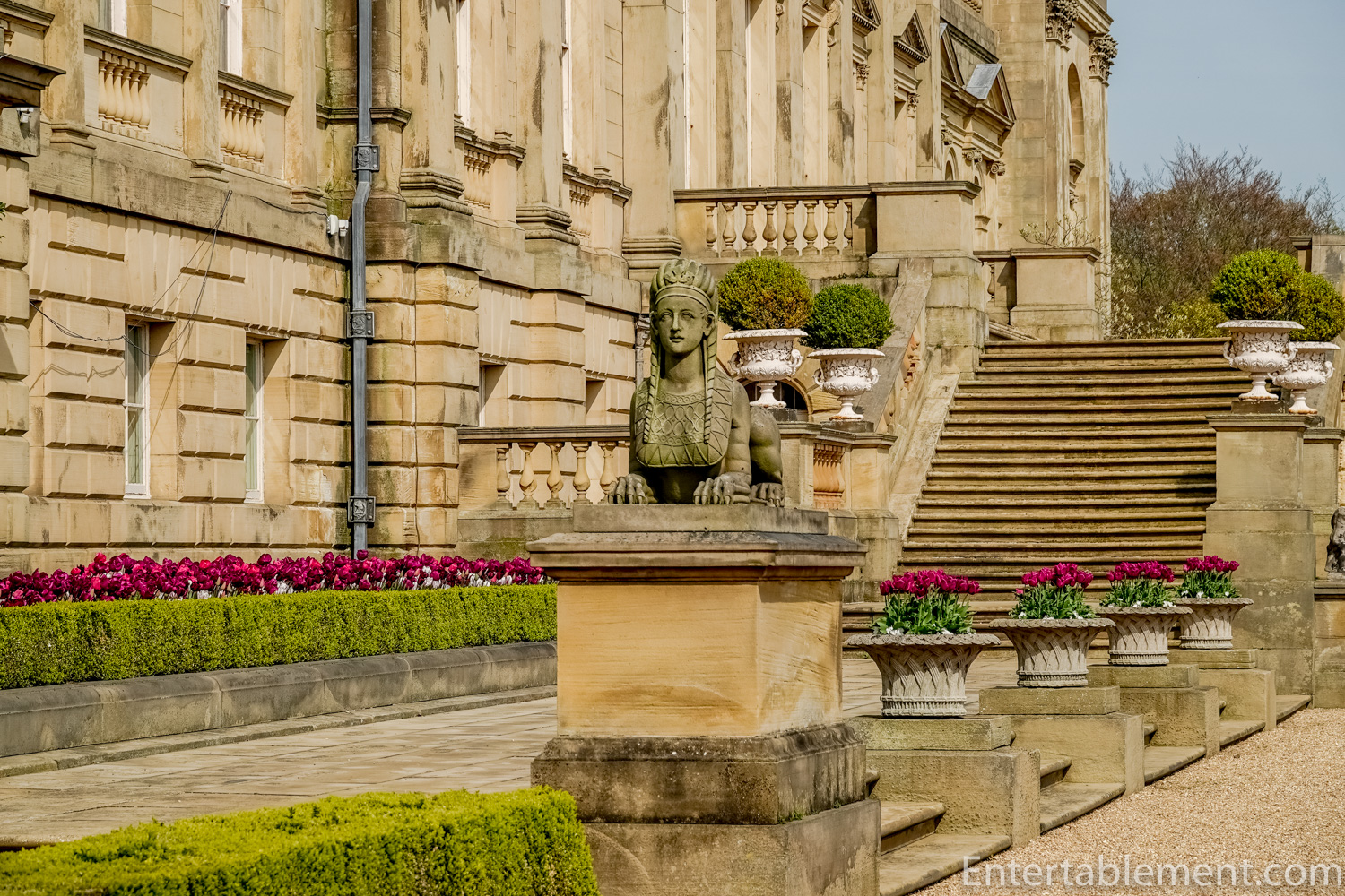 I was itching to get photos, so I left Glenn to enjoy his second cup of tea and made my way down the wide gravelled path to the edge of the parterre, just before the land drops away to the fields below. The terrace was designed by Charles Barry, the same architect who did the renovation in the 1840s for the 3rd Earl.