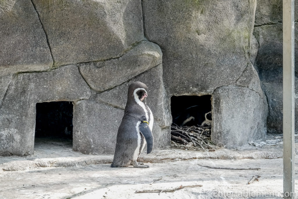 The penguin enclosure is just the other side of another building set aside as a cafe, though it was deserted that day.