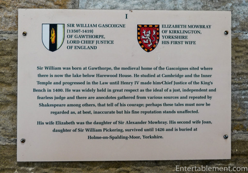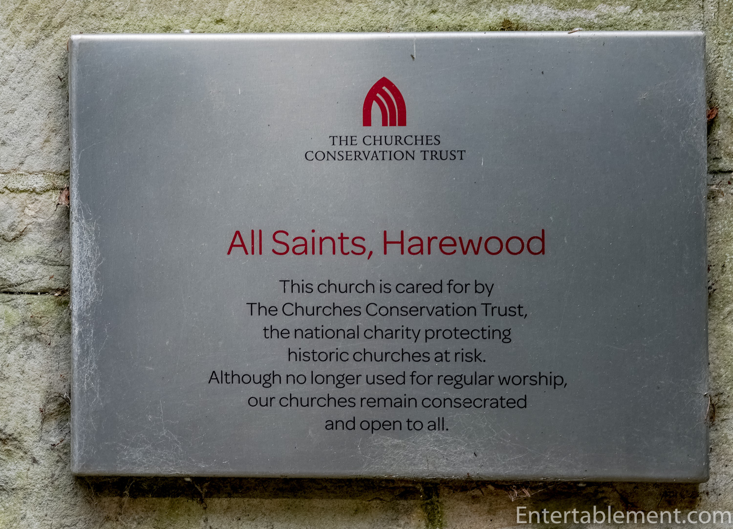 Though deserted, there was very good signage, and we had just enough energy left to give it our attention. The church has its roots in Harewood’s medieval past. It was built around 1410 by Elizabeth and Sibyl de Aldeburgh, who were the daughters and joint-heiresses of Sir William de Aldeburgh of nearby Harewood Castle. What? Wait… there’s a castle? How could I have missed that? Here is a screenshot from the website. It’s something else I need to see when we return.
