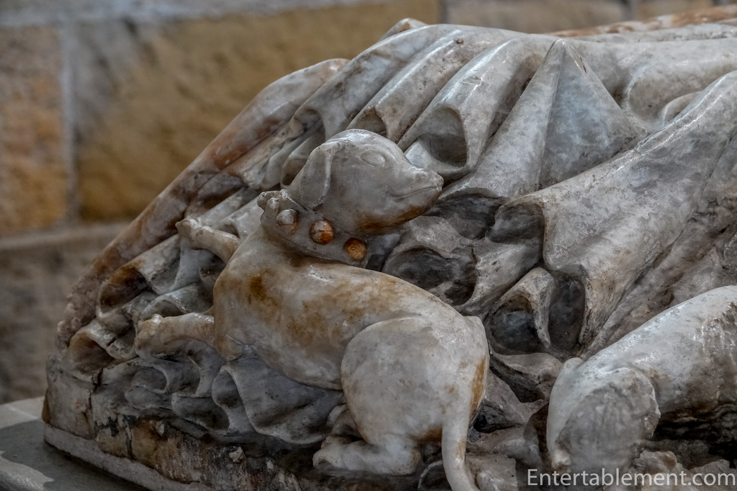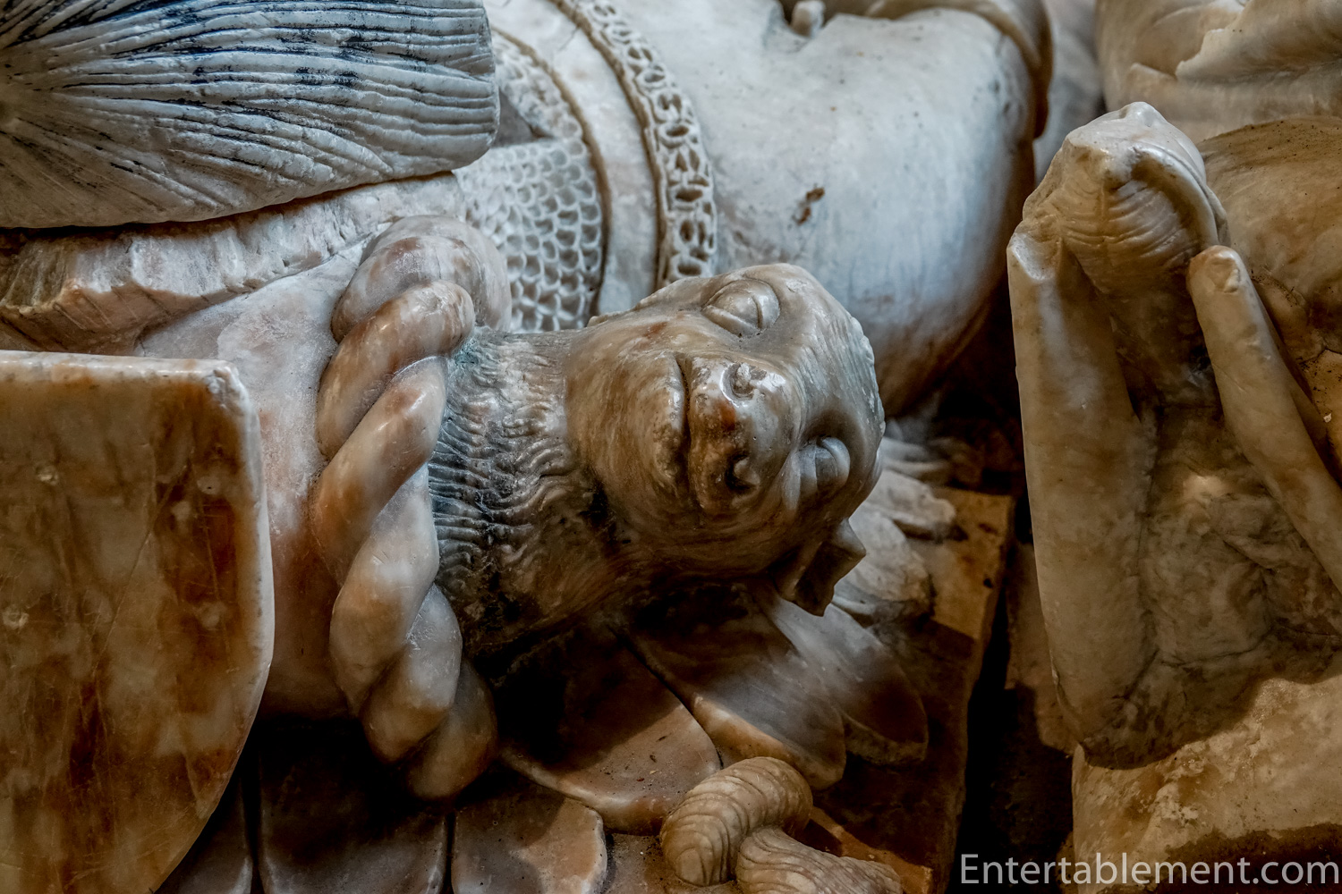 The figures are dressed in typical costumes of nobles of the day: men in armour and women in elaborate garments with jewels and headdresses. Though if the choice was left to me, I think I’d pick something a good deal more comfortable in which to snuggle down for my eternal sleep.