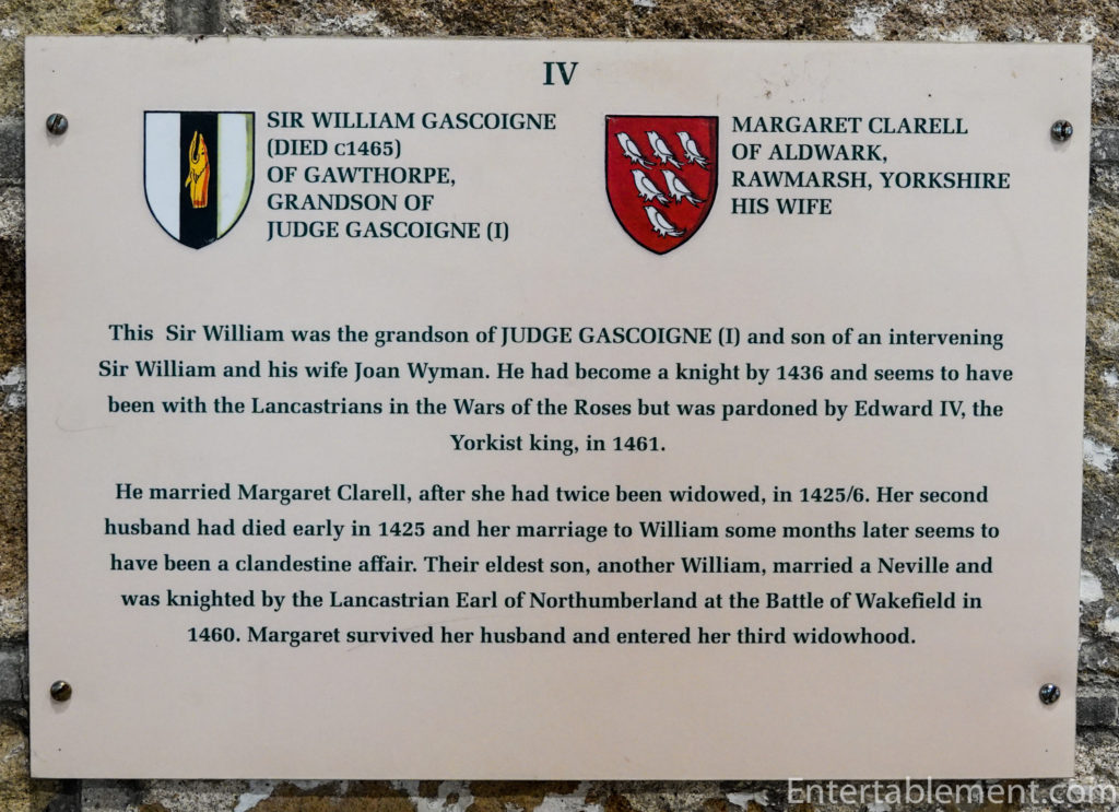 The family seems to have had a typically complex history, trying to stay on the right side of whatever ruling power was battling it out at the time and dealing with remarriage after death through conflict or disease. One Margaret Clarell of Aldwark seems to have gone through a lot of husbands in fairly short order. Agatha Christie would have had a ball with that one.
