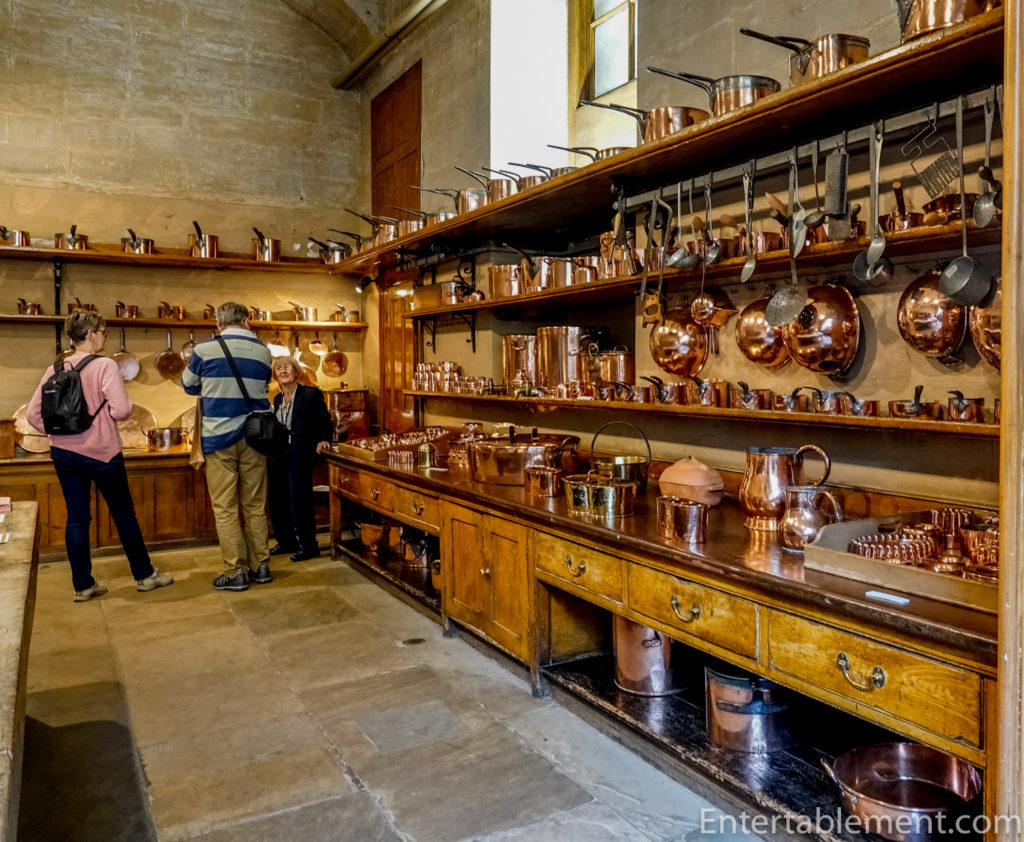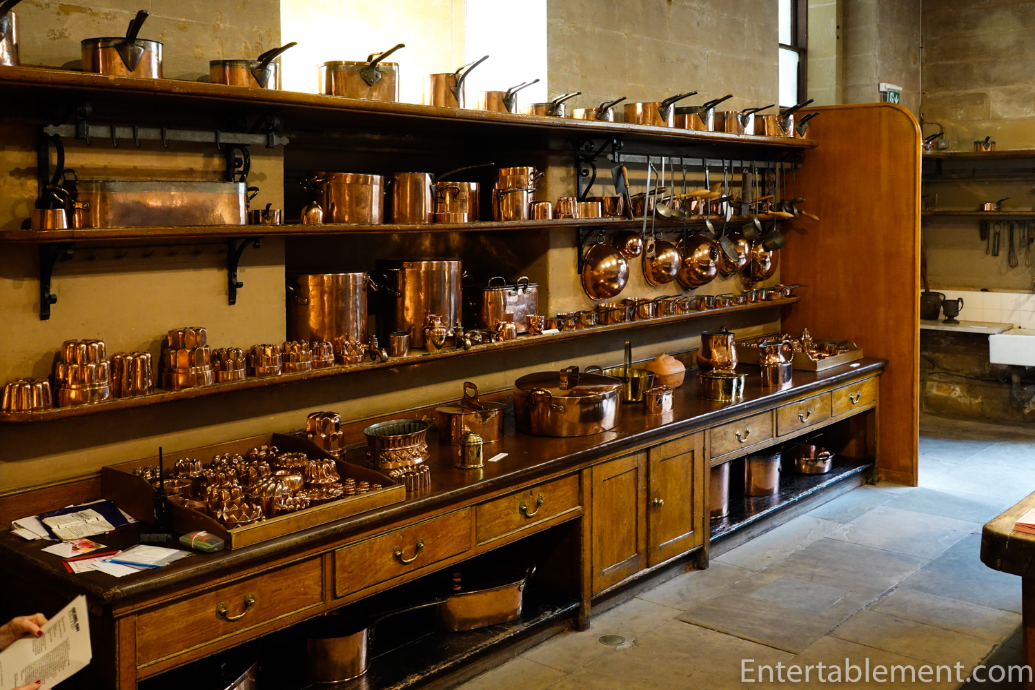 The kitchen got a refresh with the advent of the 3rd Earl and Countess and their thirteen children in the 1840s. Upstairs, extensive renovations were underway under the direction of architect Sir Charles Barry. Down here in the kitchen, old equipment and fittings were replaced, a charcoal stove was installed, and a brand new set of copper pots, pans and utensils were purchased. The Head cook was still the most highly paid servant and for good reason. During the month of December in 1880, for example, over a ton of meat was cooked, and 1200 dinners were prepared, 102 of them on Christmas Day alone. The servants of yore were clearly made of sterner stuff than those of us who have just prepared Christmas dinner for our families and needed two days to recover.