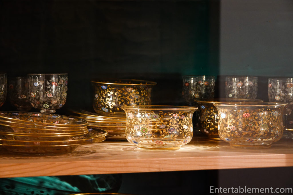 Then there were two full cupboards showing more of the Millefiori glassware. Apparently, what we saw on the dining table upstairs was just a taste test.