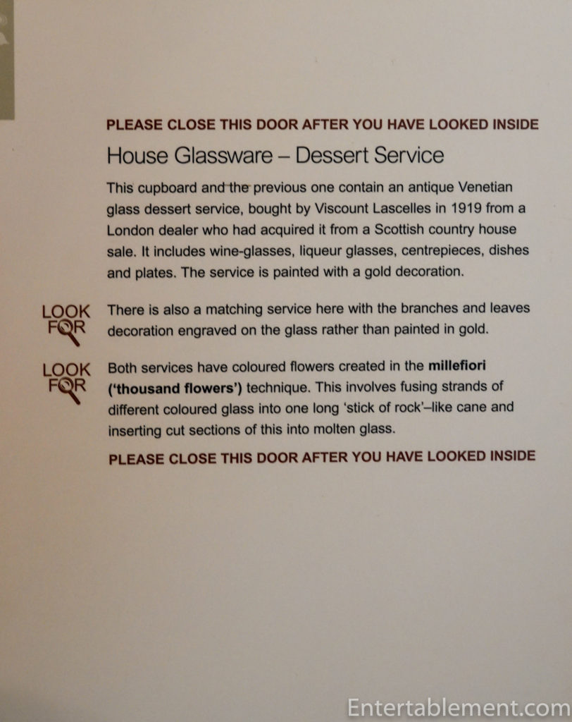 Good day, everyone, and welcome to Harewood House Part II. Sorry for the delay in providing the sequel to Harewood House Part I. Travel and the holiday season got the better of me in the intervening period, but I’m determined to tie off as many loose ends as I can before the New Year is upon us. To resume our journey, we left off in the dining room, where I was actively coveting the Millefiori dessert service. From there, we moved belowstairs to the kitchens, the source of all the delicious sustenance that graced the beautiful tableware in the dining room