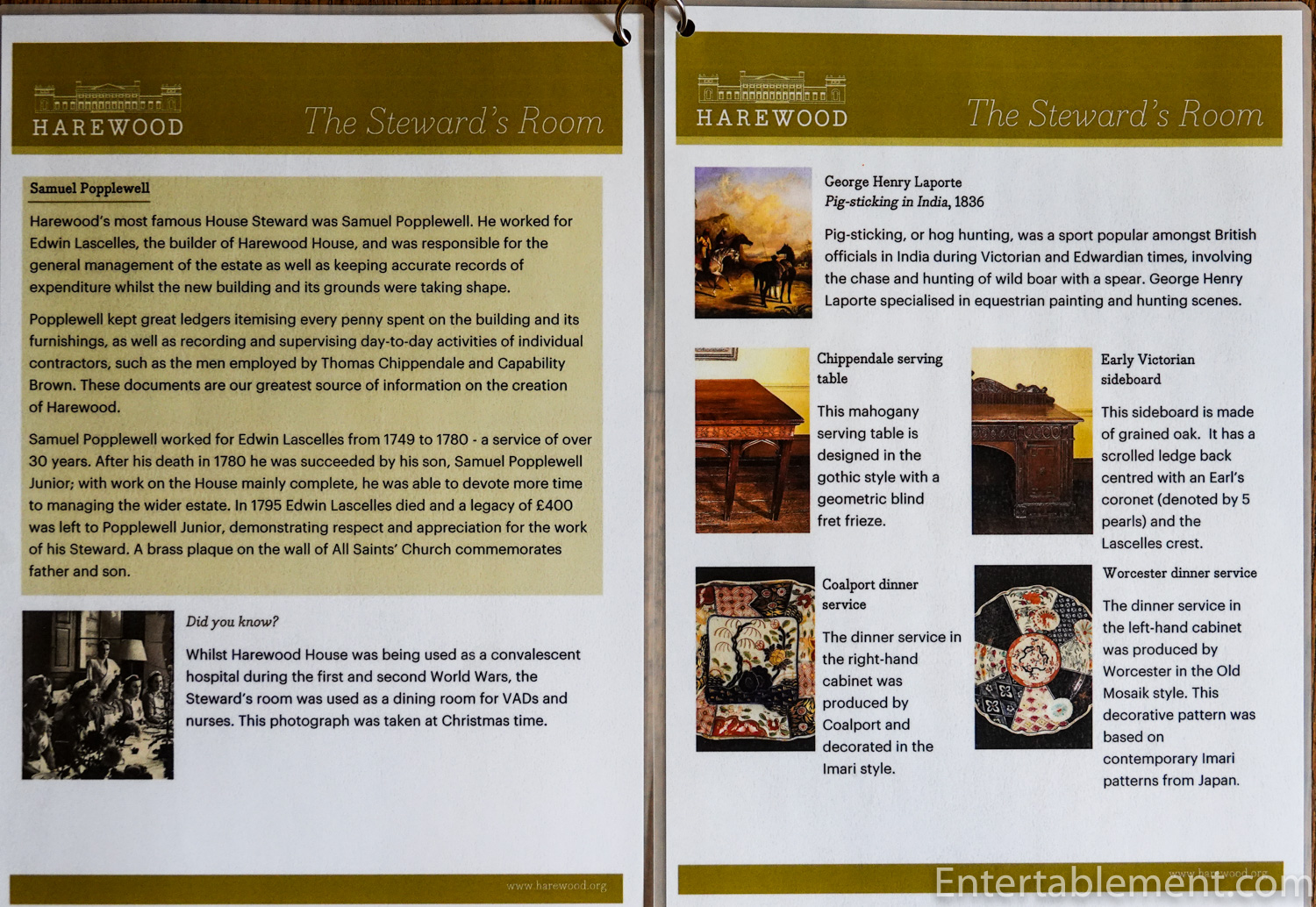 Glenn had had about enough tableware gazing by then. so I reluctantly tore myself away and moved down the hall past the still room, the pastry room and the empty servant’s hall, ending up in the House Steward’s room. The House Steward was the most senior staff member within the house, and according to the laminated card on the table “was responsible for keeping accurate records of all household expenditure, appointing and organising all members of staff (including paying their wages) and overseeing the general operation of the House. This room is where the Steward would have undertaken his day to day duties, but it also functioned as a dining room for other senior servants.”