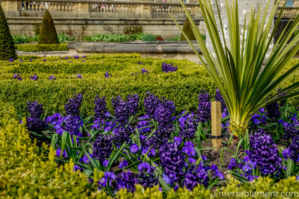 It was restored in 1994. More than 20,000 plants and bulbs are planted in the parterre every year, displaying a mass of colour from spring to autumn. The classically symmetrical flowerbeds are outlined by clipped box hedging over a mile in length—that’s a lot of clipping.