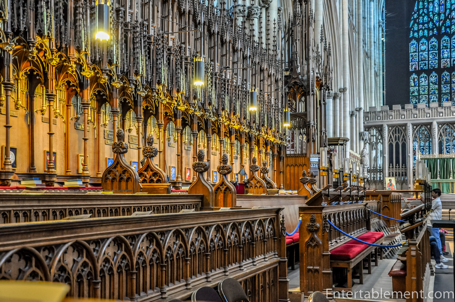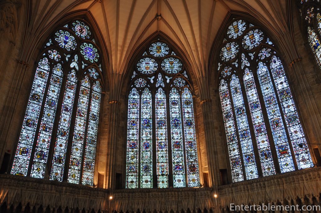 York Minster doesn’t boast much in the way of a retrochoir or chapels in the east. The main attraction is the Great East Window, the second largest expanse of medieval glass in the world at 1680 sq ft (Gloucester Cathedral’s east Crecy Window is larger).