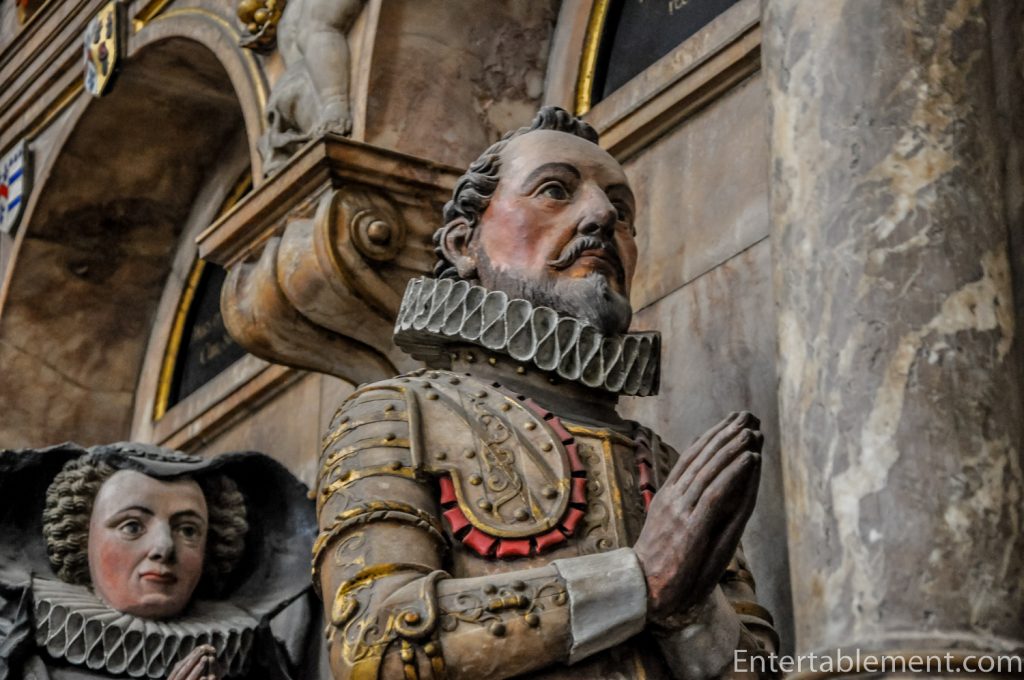 For all its political and ecclesiastical significance, not one King or Queen has been buried at York Minster. Nor does it hold many monuments for prominent members of local families who seemingly preferred to be buried in their local churches; even local politician Sir Henry Bellasis and his wife, Ursula Fairfax Bellasis, were buried elsewhere; this is just a “wall monument”.