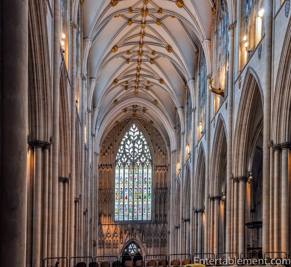 The West Front’s piece de resistance is its magnificent Heart of Yorkshire window. Let’s step inside to better admire its stained glass.