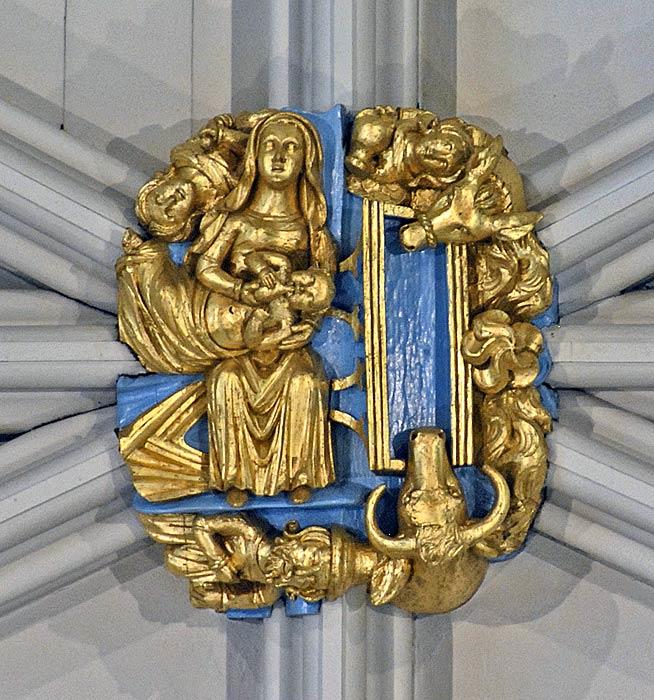 Below the crossing is the 14th-century pulpitum. It glorifies the house of Lancaster, with which the Minister was always heavily aligned, despite being in York. During the War of the Roses, Northern England was caught between two fires, so to speak. The powerful northern Plantagenet families of Neville, Percy, Mowbray, Clifford and Hastings offered support against Scottish incursions to the North even while fending off the English York faction to the south.