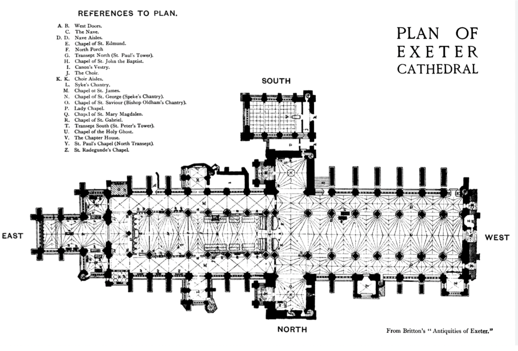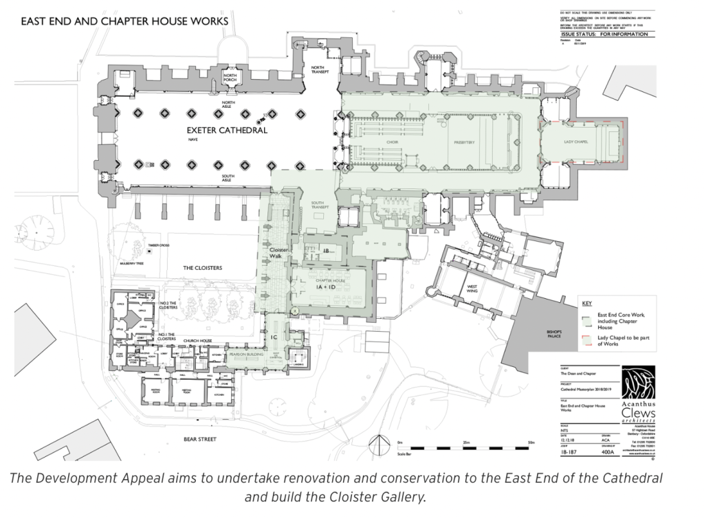 Exeter is currently undergoing a Development Appeal to do considerable work to the East End of the Cathedral, including building out the Cloister Gallery, which will be about half the footprint of the Cathedral.