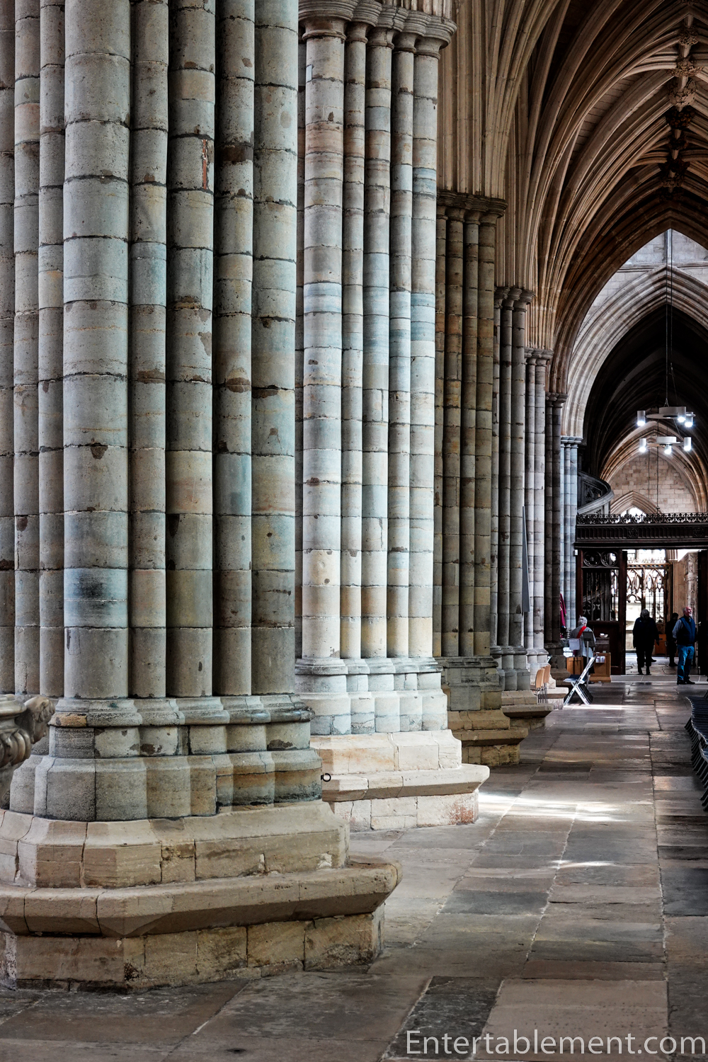 The pillars (or piers, as they’re also called ) comprise sixteen shafts with eight mouldings to each arch. The piers are made from Purbeck marble, and the shafts are creamy limestone.