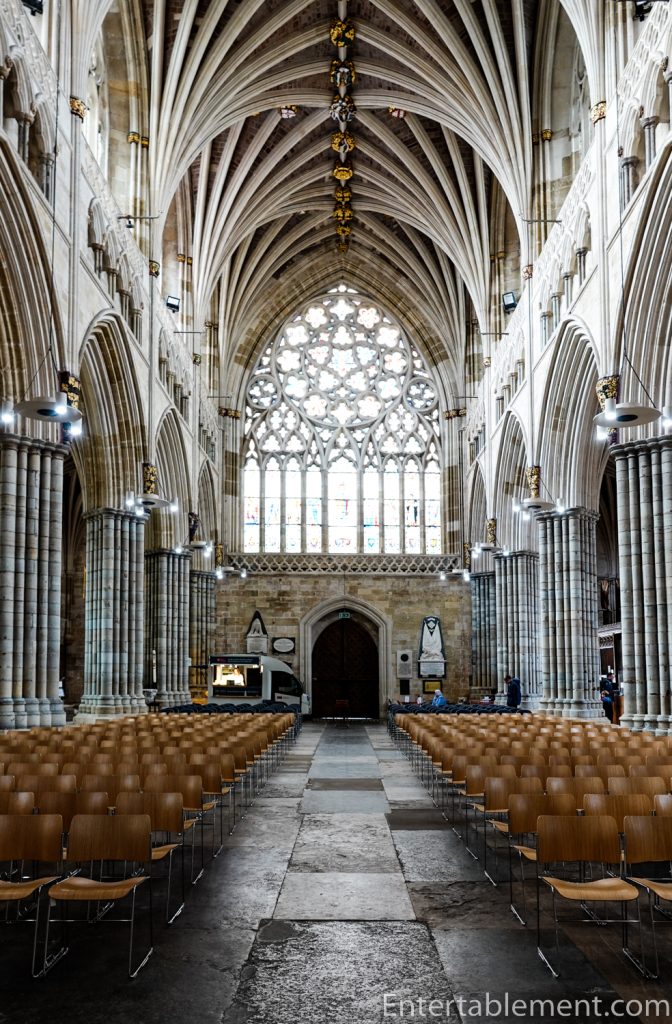 Exeter Cathedral is an excellent example of Decorated Gothic architecture in its purest form. It’s a miracle it survived the bombing of 1942; the surrounding area was flattened and rebuilt in depressingly post-war fashion: in a hurry and on the cheap. I’m delighted that the powers that be are working to beautify the grounds around the Cathedral and give us a better sense of what they might have looked like with the cloisters.