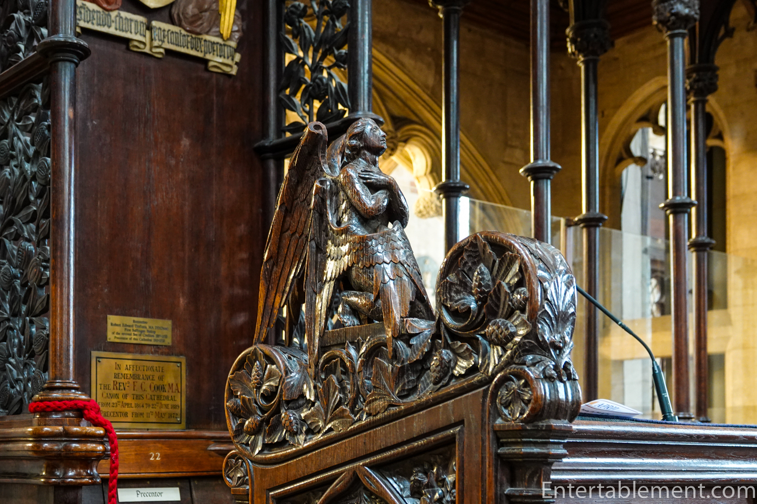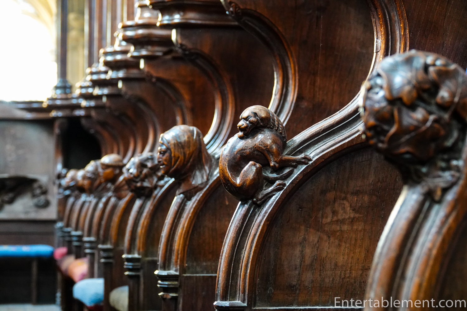 The more extensive carvings on the ends of the rows were stunning—a not-unexpected couple of angels.