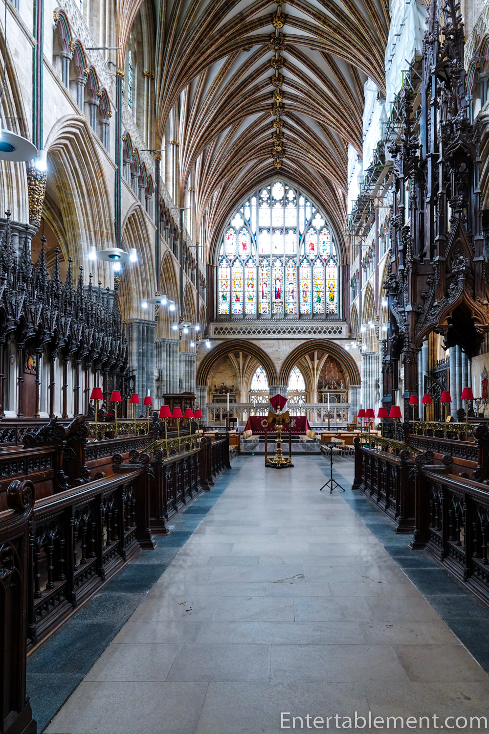 Through the pulpitum, we are in the choir, where we can begin to see the delights in the eastern end of the Cathedral.