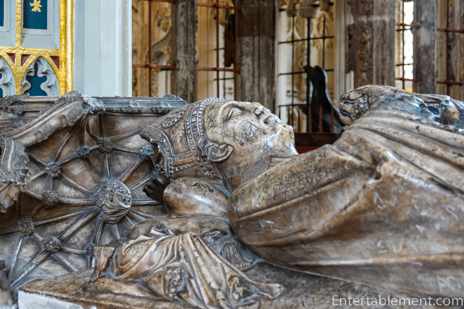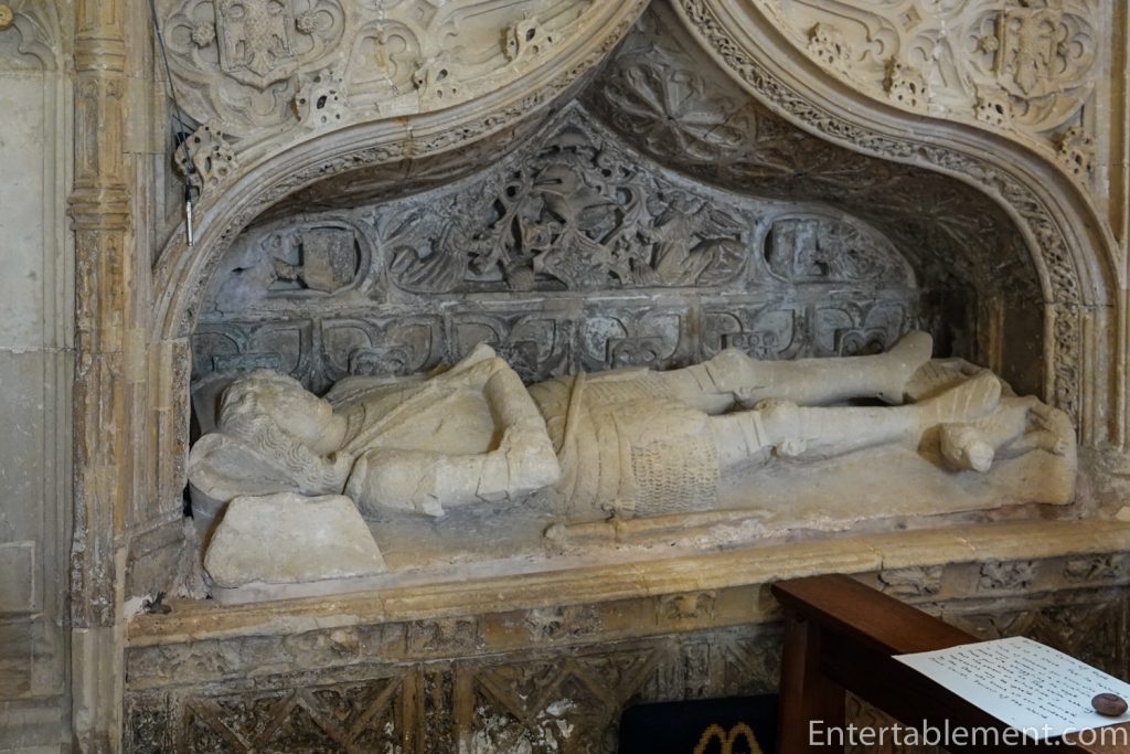 Anyone tempted to tut-tut the graffiti habits of today’s youth might be relieved (or horrified) to discover this practice has a long history. The alabaster effigy of Bishop Edmund Stafford, who died in 1419, is liberally defaced with very old scratches.