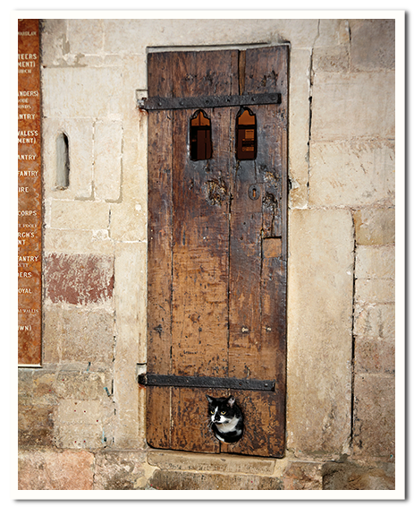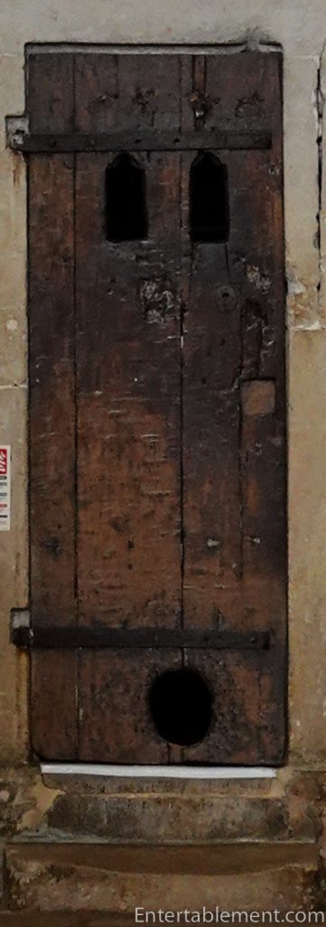 Now, for another fun feature. See the hole in the door below the clock? It’s the oldest existing cat flap in a Cathedral in England, installed because the clock developed a rodent problem. The ropes, lubricated with animal fat, were a magnet for mice (and rats). So the cat flap was installed to allow cats to deal with the gnawing intruders.