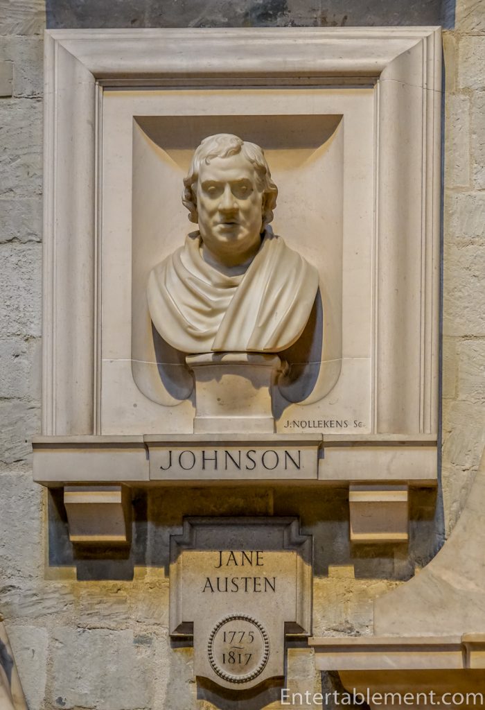 Jane Austen, the Bronte Sisters and Charles Dickens. Below is the memorial to Samuel Johnson, author of the great Dictionary of the English Language, published in 1755.