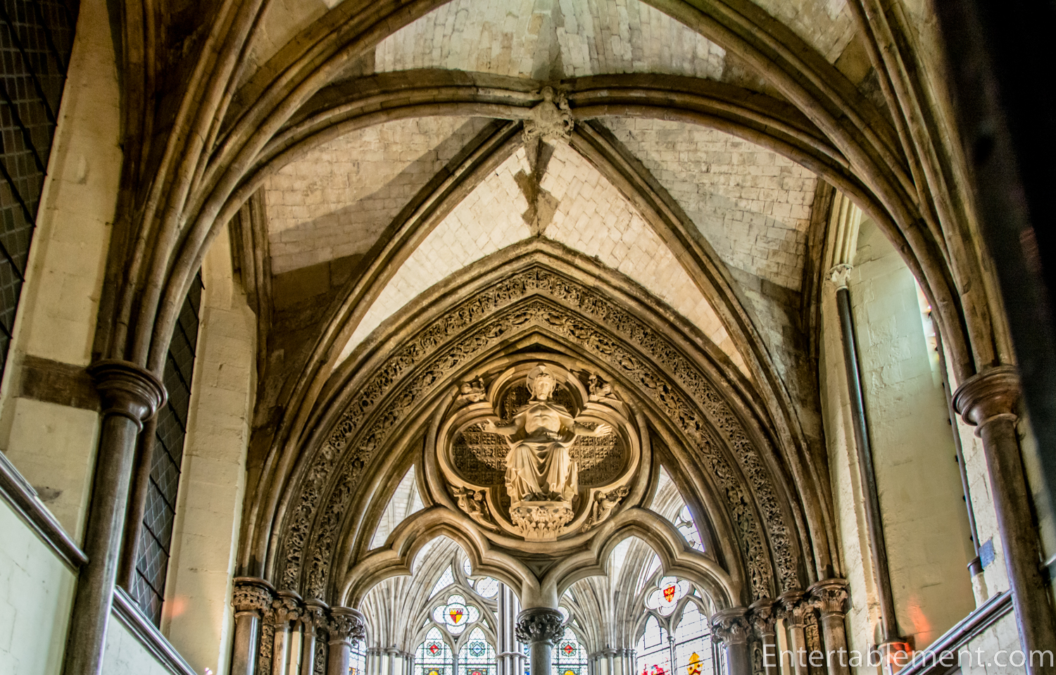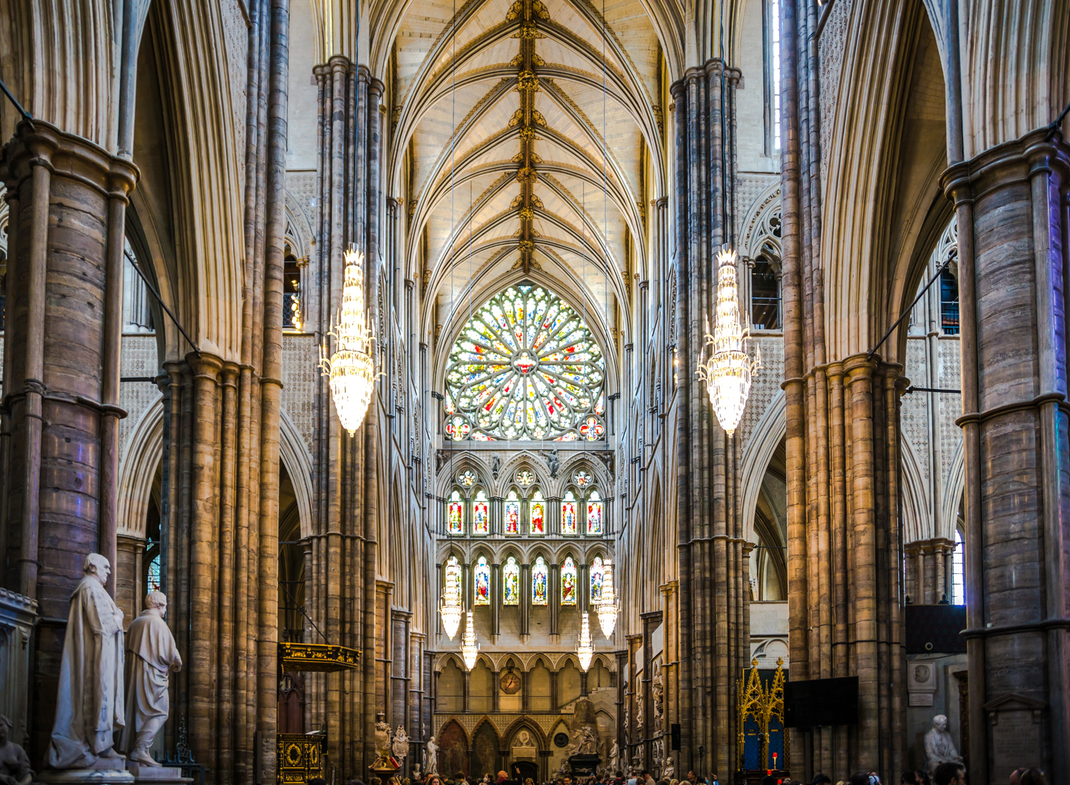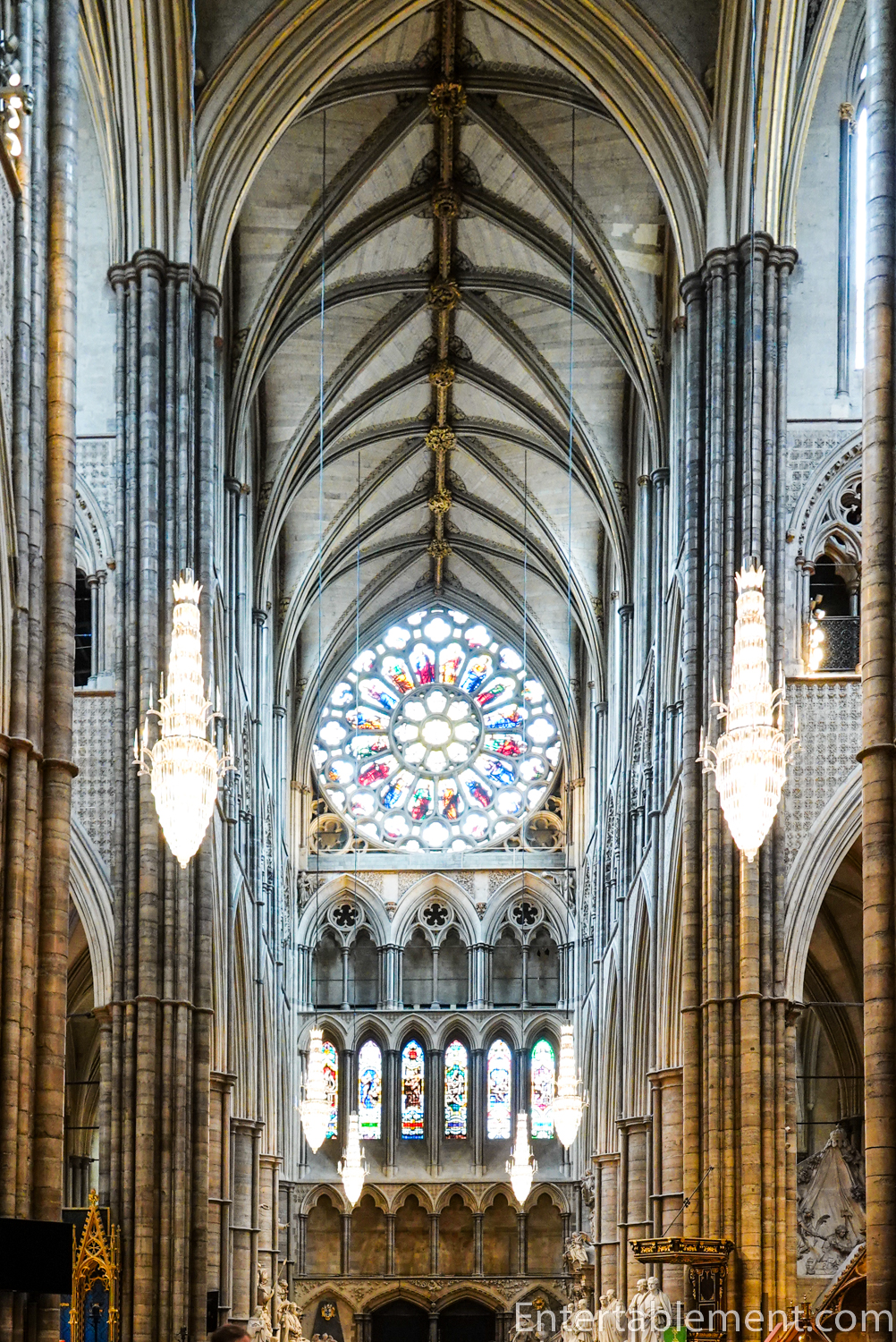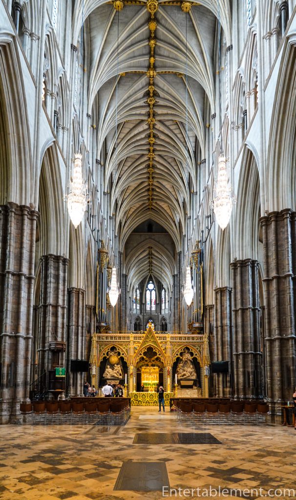 The Abbey has the highest Gothic vault in England —nearly 102 feet, which feels even higher due to the fairly narrow aisles on each side of the nave.