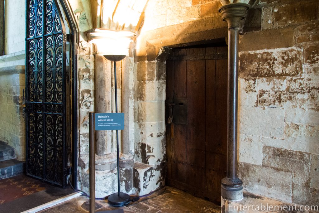 In the covered entrance to the Chapter House is what is thought to be the oldest door in Britain, possibly dating from 1050. It was cut down from a larger door, likely with a rounded top.
