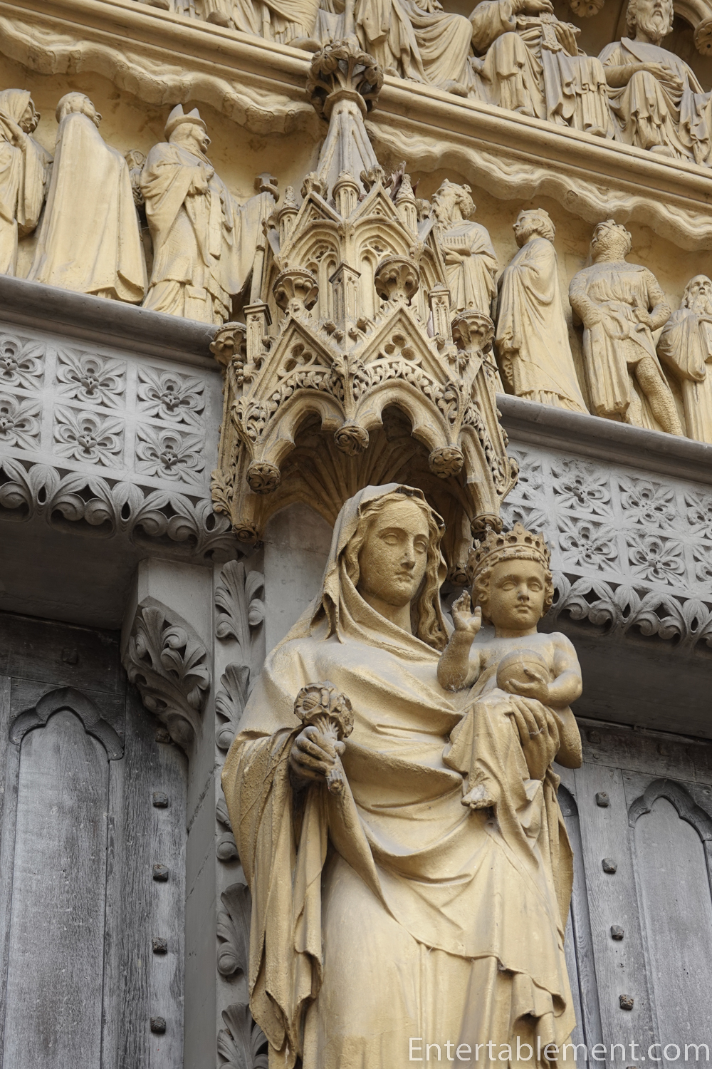 The entrance for the public is through the North Transept, which is unusually large relative to the size of the nave, to allow for a large “theatre” space at the crossing of the cathedral in front of the high altar. The large buttresses don’t do much for the beauty of the exterior, but they had to support the outward thrust of the walls somehow!
