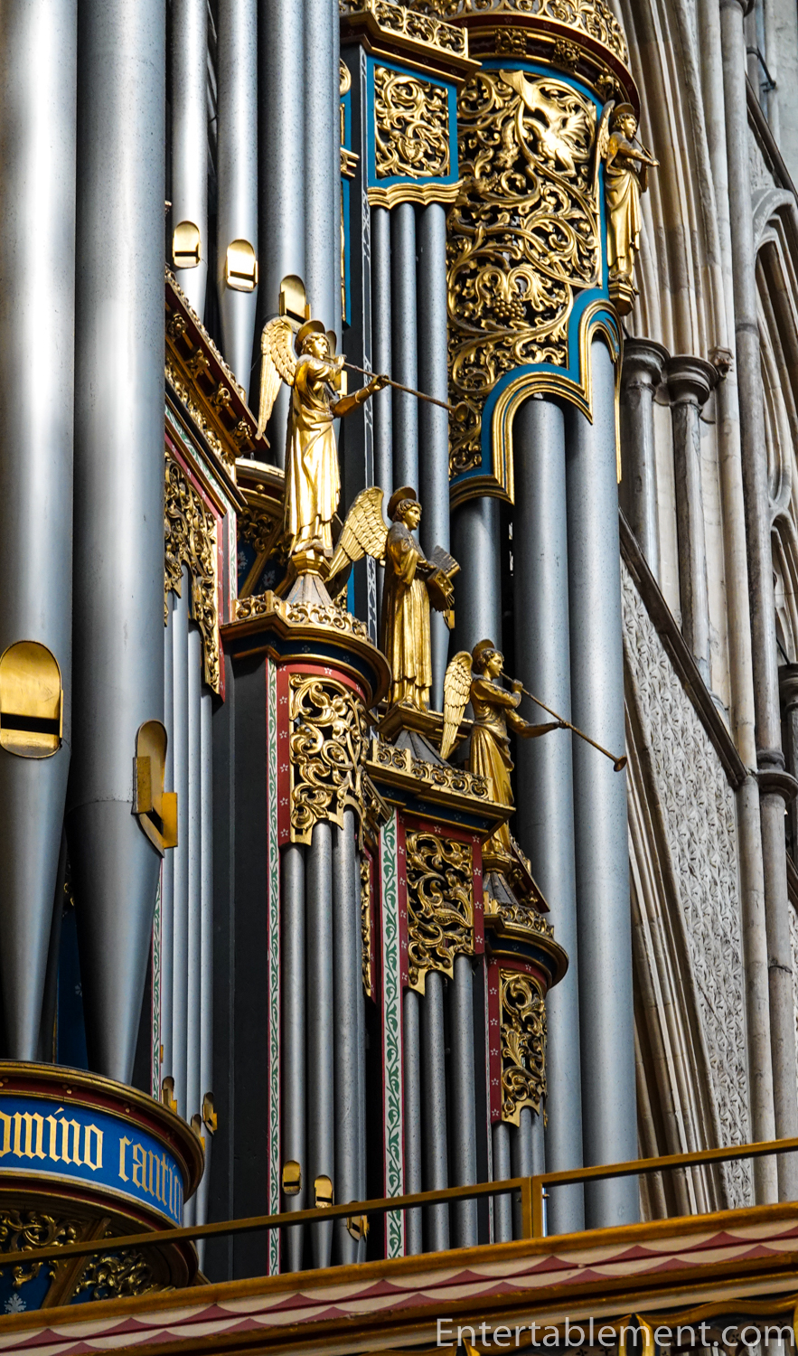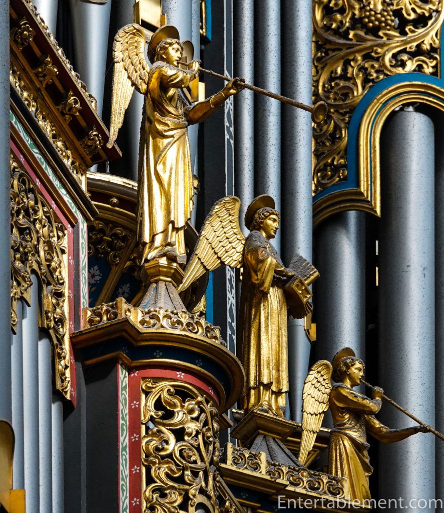 The organ pipes are similarly embellished.