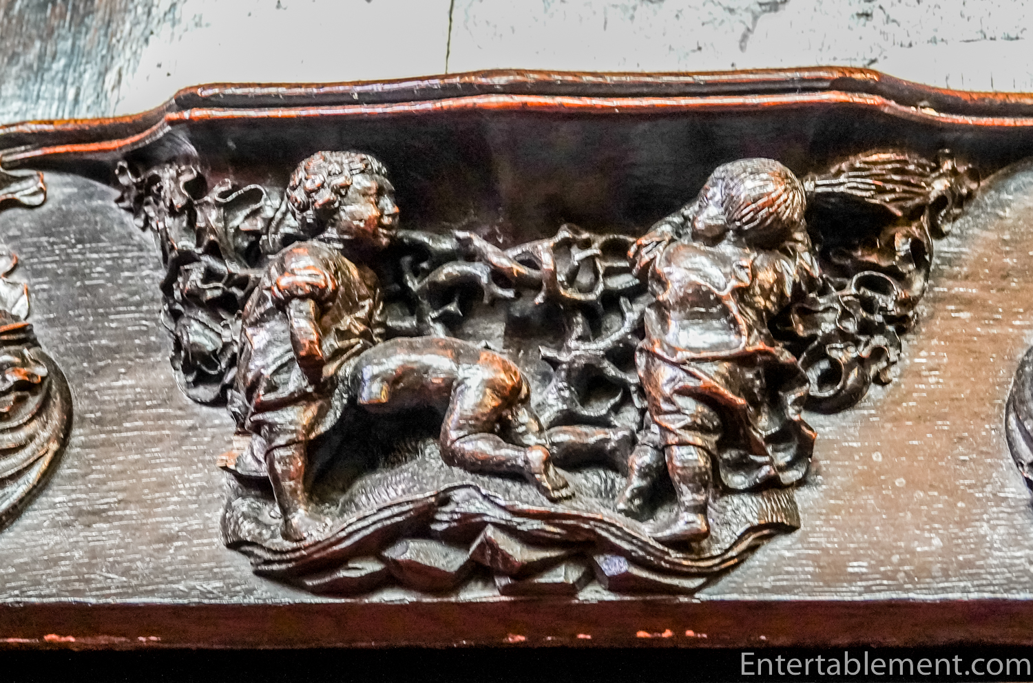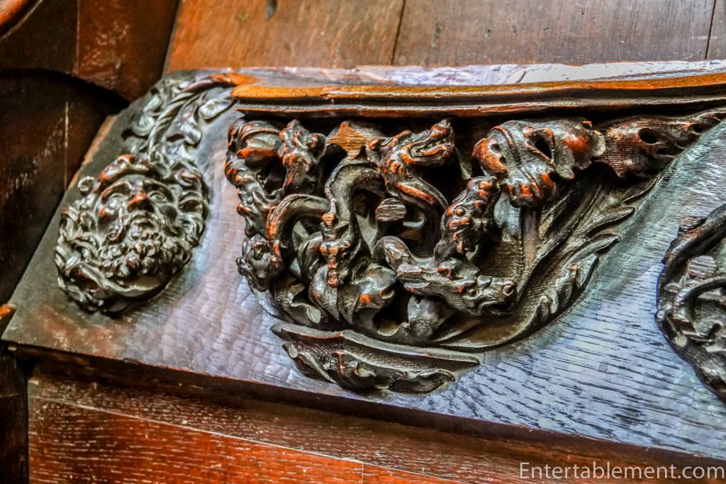 Two rows of seventeen seats on either side of the chapel provide an absolute feast of misericords. The grandgirls were fascinated, having never seen anything like them before. The full complement of 68 seats is described on the Abbey website.