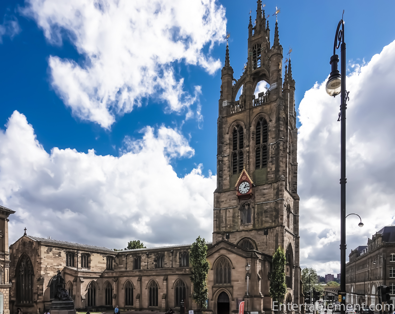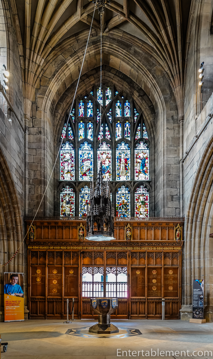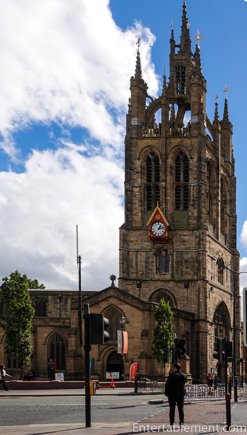 Heavily restored in 1777, the parish church was raised to cathedral status in 1882. It became known as the Cathedral Church of St Nicholas, the patron saint of sailors and boats, likely reflecting its position above the River Tyne. It now occupies a very busy street corner, with almost no land around it. Getting good shots of the entire Cathedral is next to impossible.