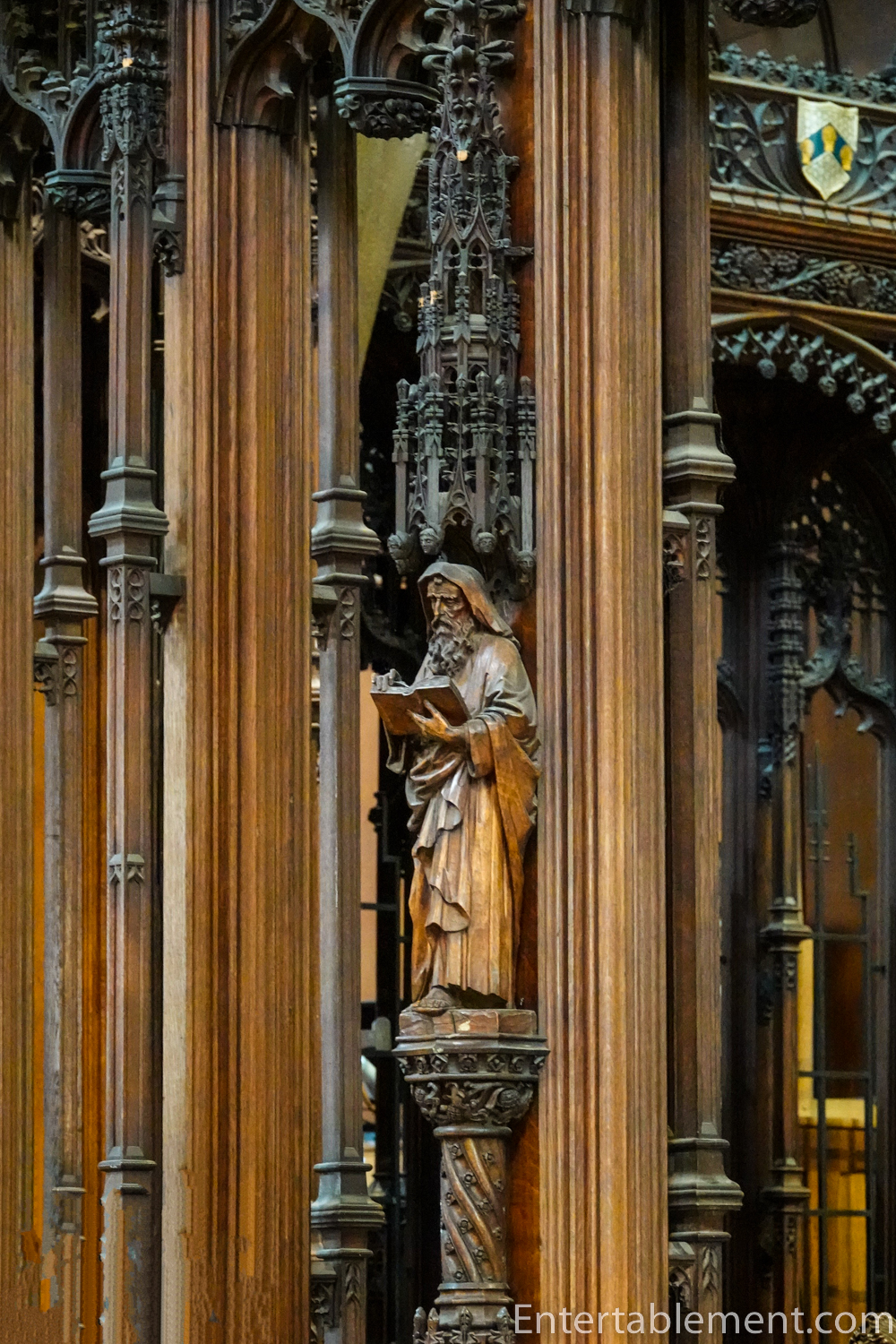 The choir stalls look medieval, thanks to Hedley’s attention to detail.